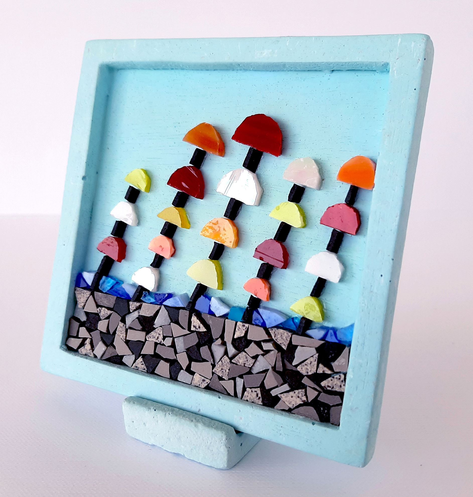 Τo ψηφιδωτό καδράκι κατασκευάζεται σε βάση χρωματισμένου ρητινούχου γύψου με πέτρα ή χωρίς και συμπεριλαμβάνει μία βάση στήριξης από το ίδιο υλικό. Οι ψηφίδες που χρησιμοποιούνται είναι κεραμικές και βιτρώ γυαλί. Οι διαστάσεις του είναι 10 Χ 10 cm και πάχος 1 cm. Όλα τα έργα είναι χειροποίητα και μπορεί να υπάρχουν μικρές διαφοροποιήσεις. Τα χρώματα των φωτογραφιών μπορεί να φαίνονται ελάχιστα διαφορετικά από τα πραγματικά. Σιγουρευτείτε ότι το μέγεθος είναι το κατάλληλο για εσάς.