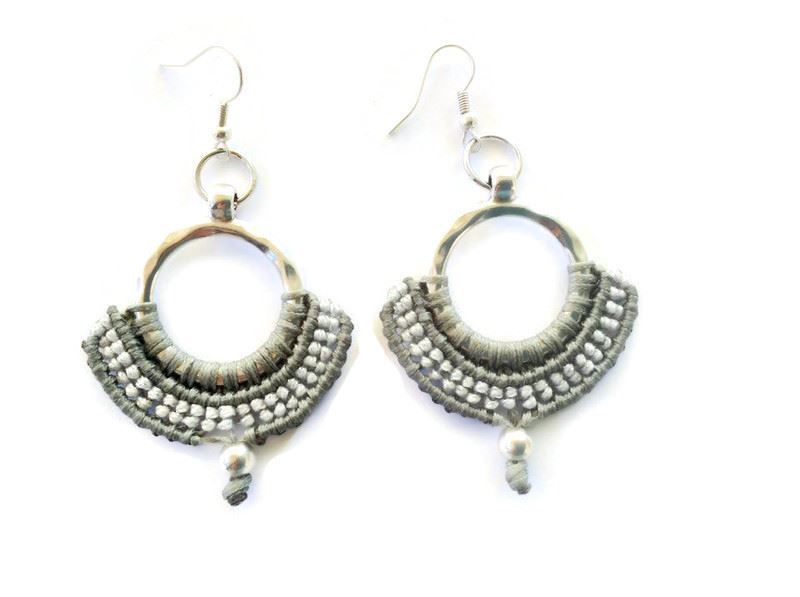 Χειροποίητα σκουλαρίκια με την τεχνική μακραμέ με μεταλλικά στοιχεία Τα μεταλλικά στοιχεία είναι nickel-free, κατασκευασμένα από ποιοτικά και υπoαλλεργικά υλικά. Tα ασημένια άγκιστρα/κουμπώματα στα σκουλαρίκια παρέχονται με επιπλέον χρέωση 1€