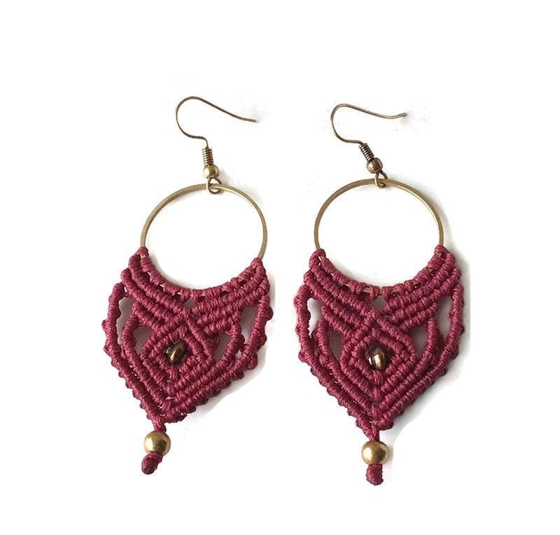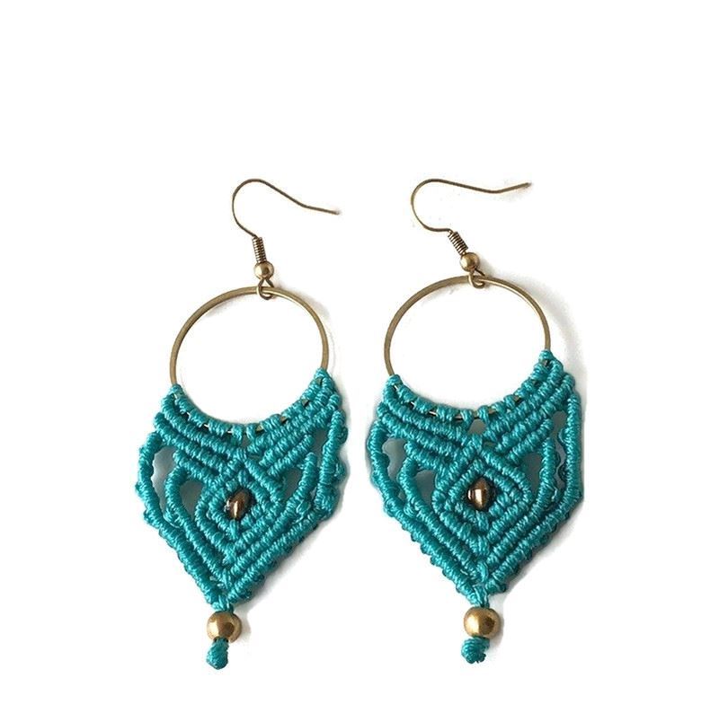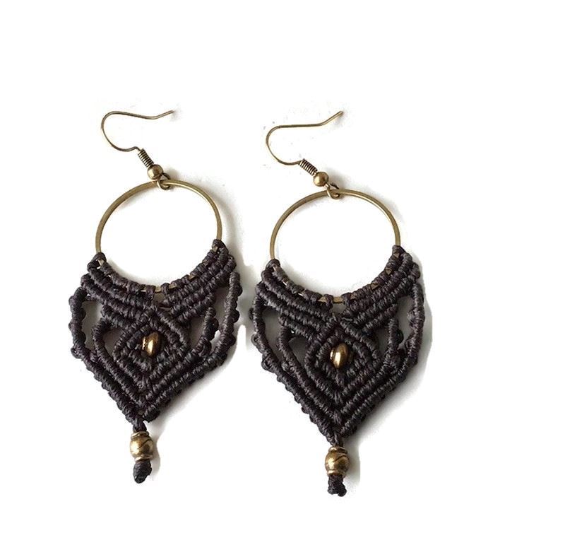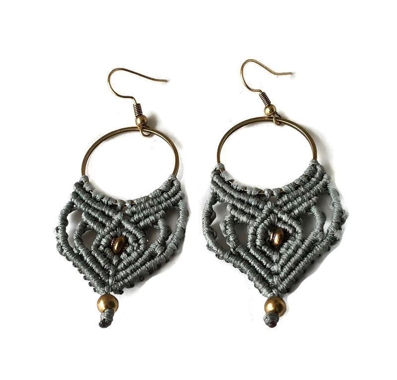 Χειροποίητα σκουλαρίκια με την τεχνική μακραμέ με μεταλλικά στοιχεία Τα μεταλλικά στοιχεία είναι nickel-free, κατασκευασμένα από ποιοτικά και υπoαλλεργικά υλικά. Tα ασημένια άγκιστρα/κουμπώματα στα σκουλαρίκια παρέχονται με επιπλέον χρέωση 1€