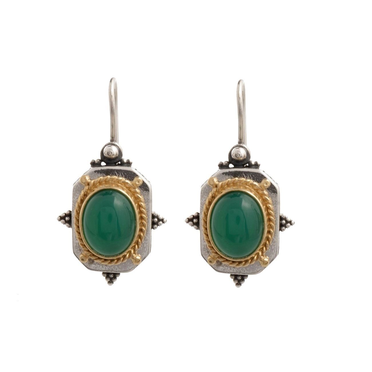 Σκουλαρίκια Γάντζος από Ασήμι 925 με Επίχρυσα μέρη και Ημιπολύτιμες Πέτρες