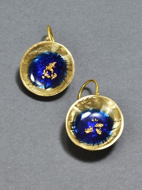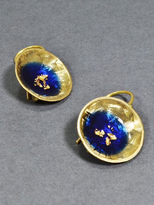 Χειροποίητα σκουλαρίκια από μπρούντζο με ρητίνη και κομματάκια από λεπτό φύλλο χρυσού . Διάμετρος 2cm. Το γαντζάκι είναι ασημένιο (επίχρυσο). Υπάρχει η δυνατότητα να κατασκευαστεί και σε ασήμι 925.