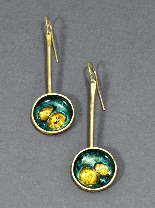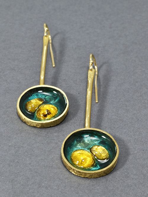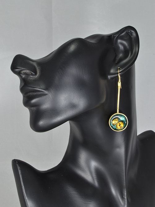 Χειροποίητα σκουλαρίκια από μπρούντζο με ρητίνη και ψημένο γυαλί. Διαστάσεις: πλάτος 2cm και ύψος 5cm.. Το γαντζάκι είναι ασημένιο (επίχρυσο). Υπάρχει η δυνατότητα να κατασκευαστεί και σε ασήμι 925.