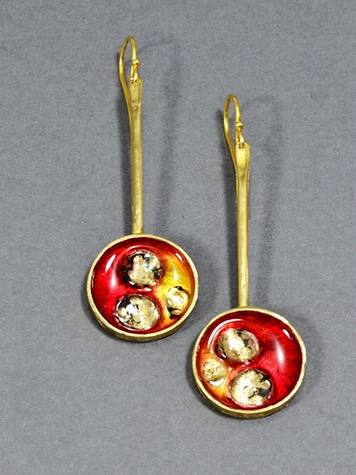 Χειροποίητα σκουλαρίκια από μπρούντζο με ρητίνη και ψημένο γυαλί. Διαστάσεις: πλάτος 2cm και ύψος 5cm.. Το γαντζάκι είναι ασημένιο (επίχρυσο). Υπάρχει η δυνατότητα να κατασκευαστεί και σε ασήμι 925.