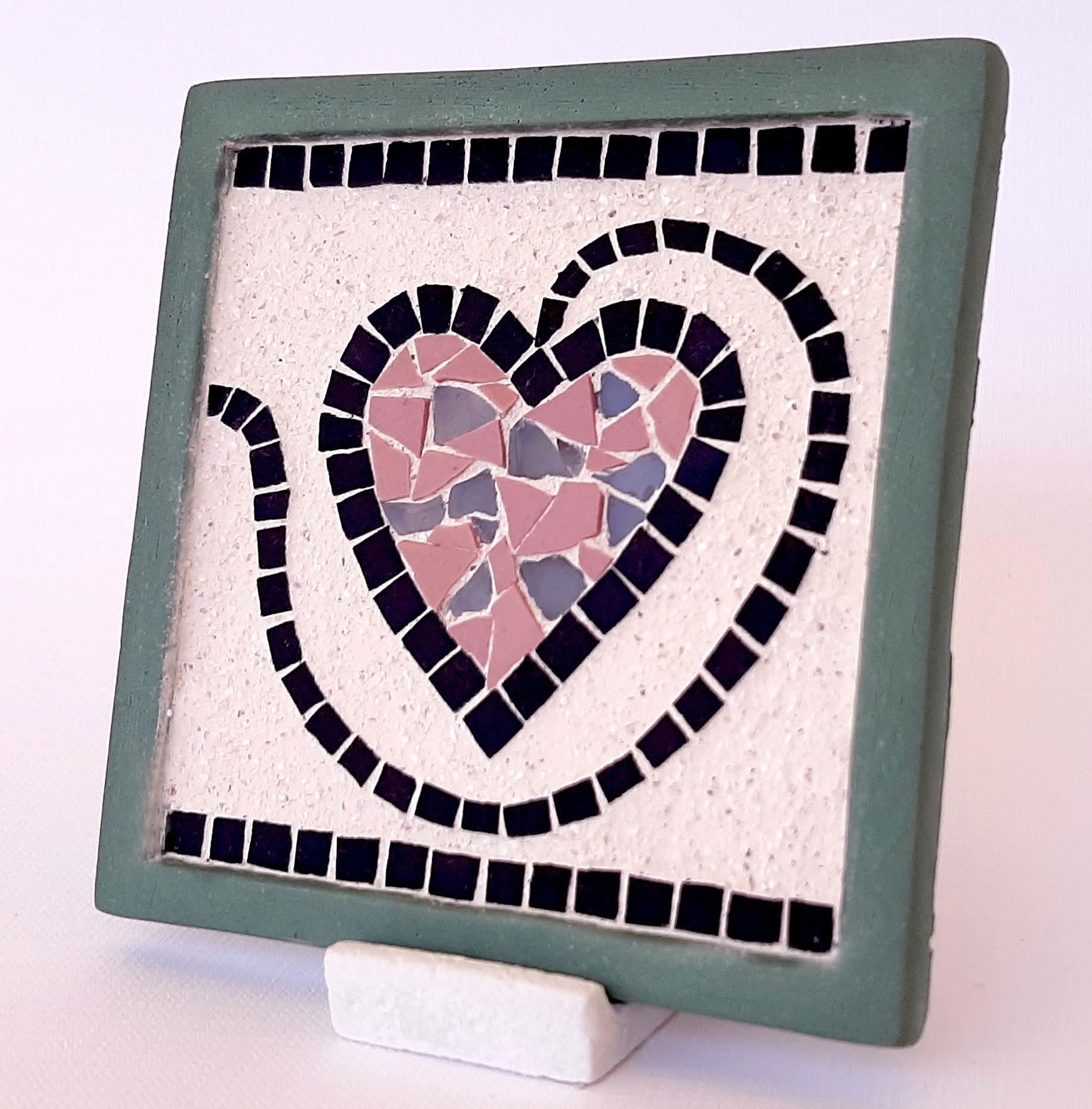 Τo ψηφιδωτό καδράκι κατασκευάζεται σε βάση χρωματισμένου ρητινούχου γύψου και συμπεριλαμβάνε μία βάση στήριξης από το ίδιο υλικό. Οι ψηφίδες που χρησιμοποιούνται είναι κεραμικές και βιτρώ με τη χρήση κονιάματος. Οι διαστάσεις του είναι 10 x 10 cm και πάχος 1 cm. Όλα τα έργα είναι χειροποίητα και μπορεί να υπάρχουν μικρές διαφοροποιήσεις. Τα χρώματα των φωτογραφιών μπορεί να φαίνονται ελάχιστα διαφορετικά από τα πραγματικά. Σιγουρευτείτε ότι το μέγεθος είναι το κατάλληλο για εσάς.