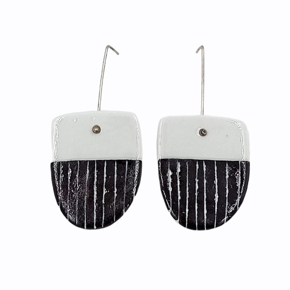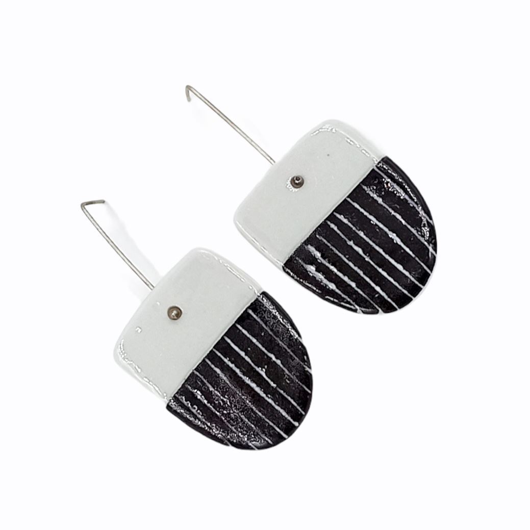 Χειροποίητα μακριά σκουλαρίκια από πορσελάνη "Stripes"