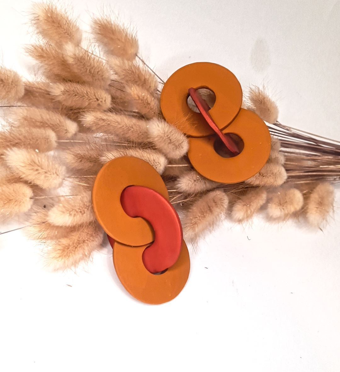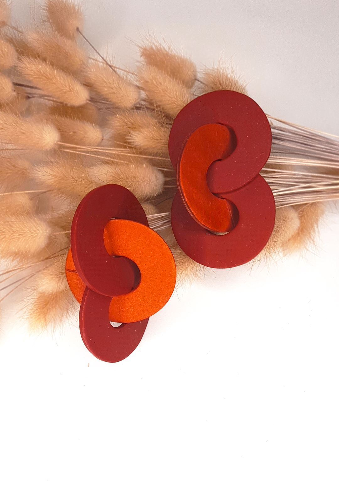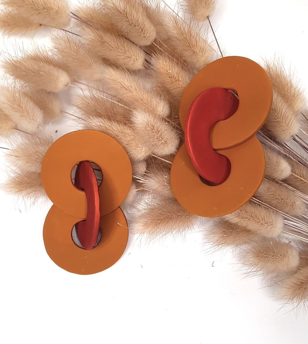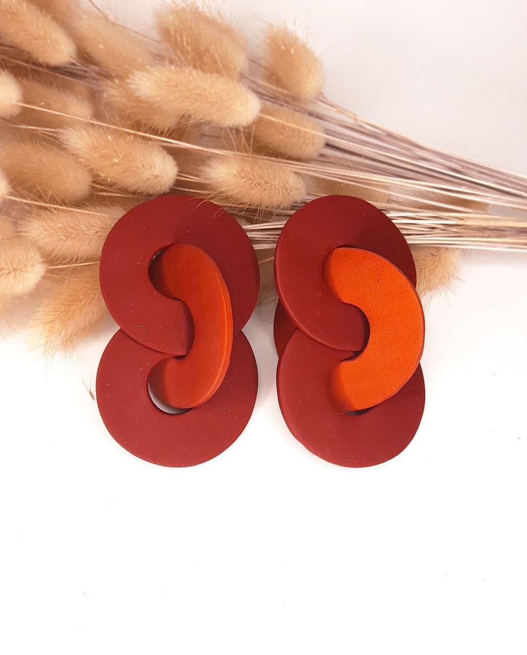 Χειροποίητα σκουλαρίκια σε σχέδιο αλυσίδα τρισδιάστατο από πολυμερικο πηλό, πολύ μεγάλο μέγεθος σε πολλά χρώματα. Στο πίσω μέρος κλείνει με ατσάλινο καρφί και επίχριση η επάργυρη πεταλούδα.