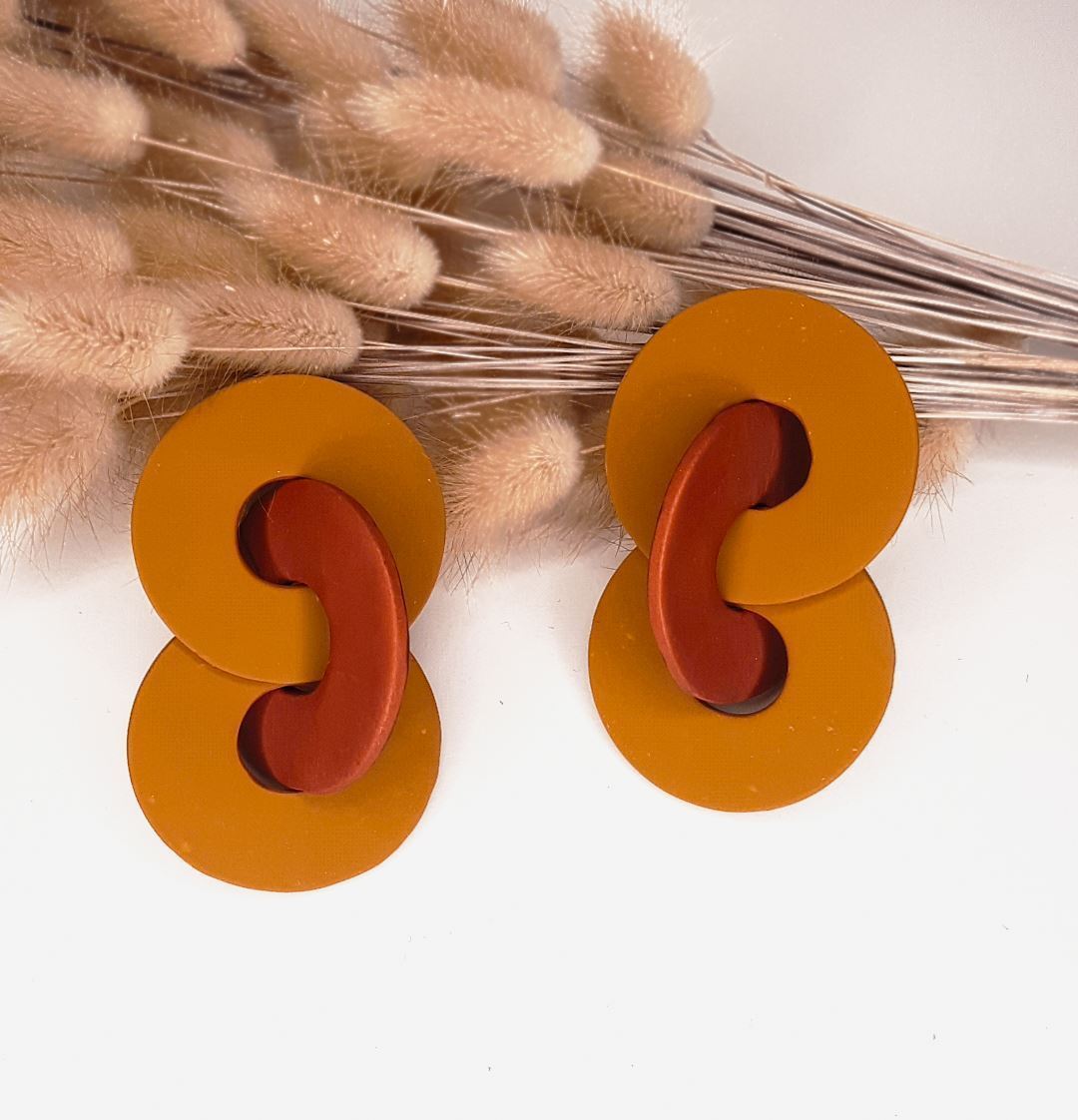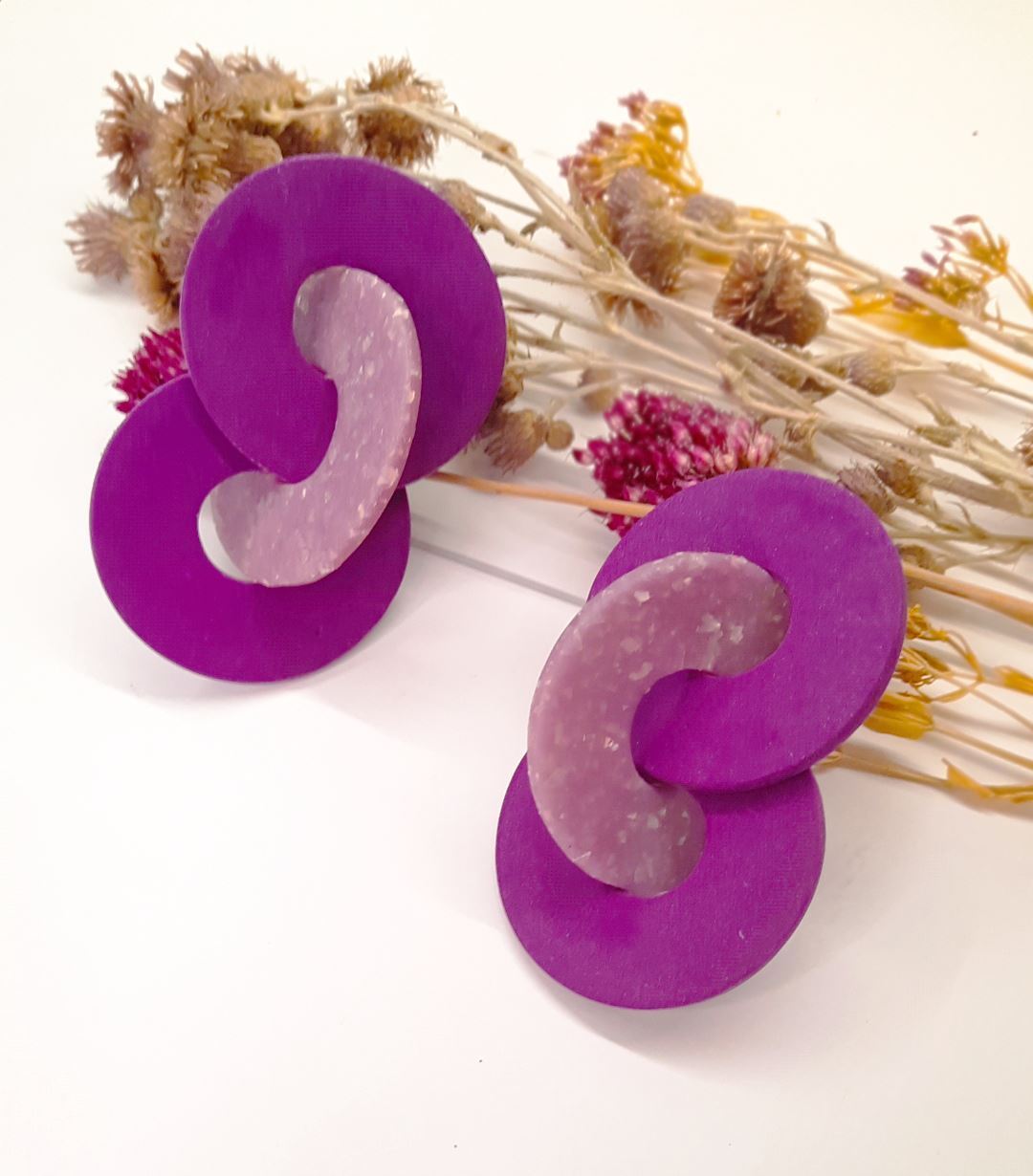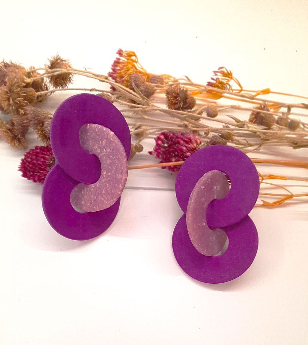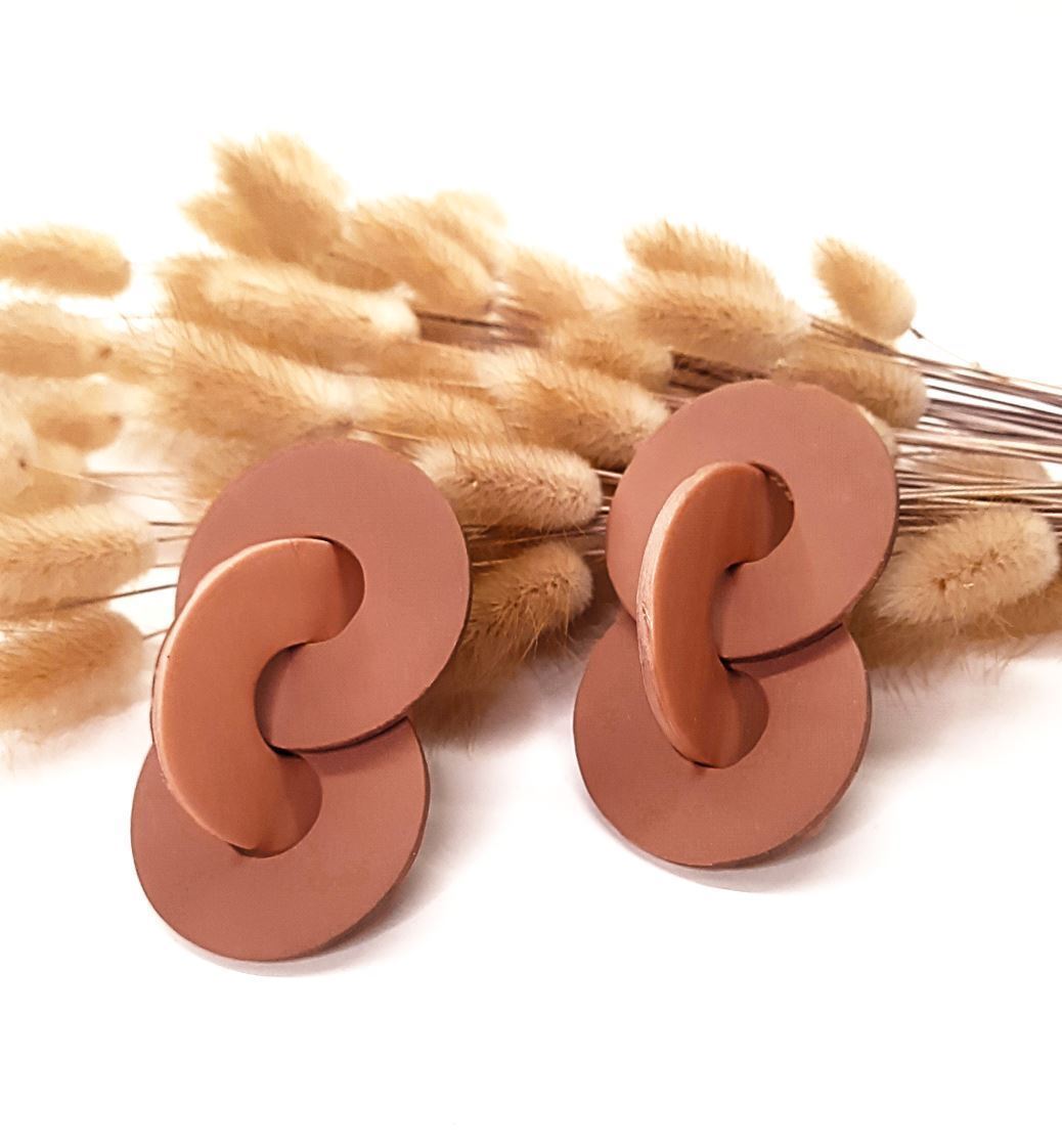 Χειροποίητα σκουλαρίκια σε σχέδιο αλυσίδα τρισδιάστατο από πολυμερικο πηλό, πολύ μεγάλο μέγεθος σε πολλά χρώματα. Στο πίσω μέρος κλείνει με ατσάλινο καρφί και επίχριση η επάργυρη πεταλούδα.