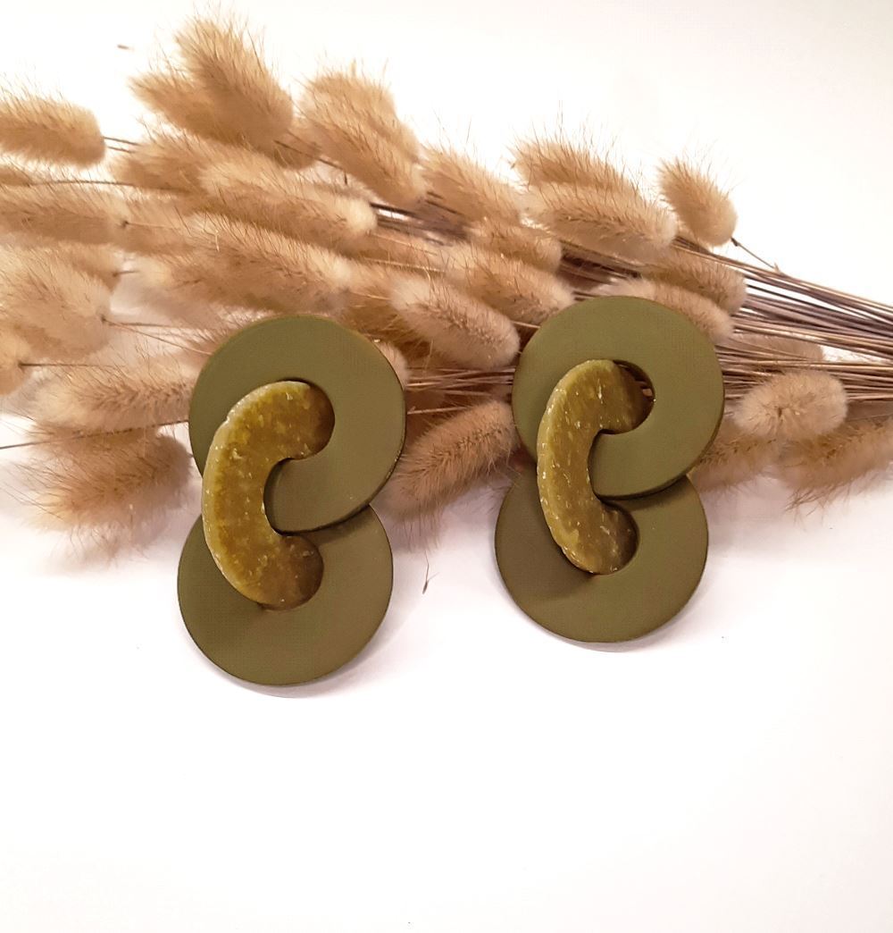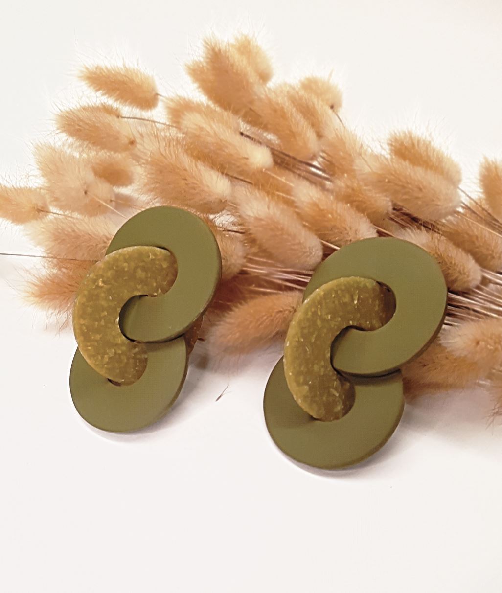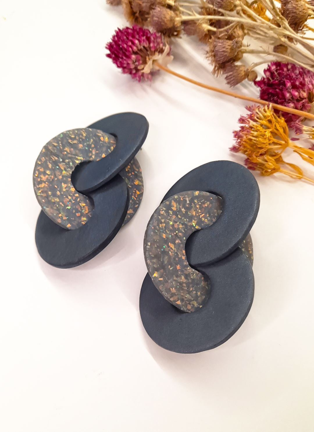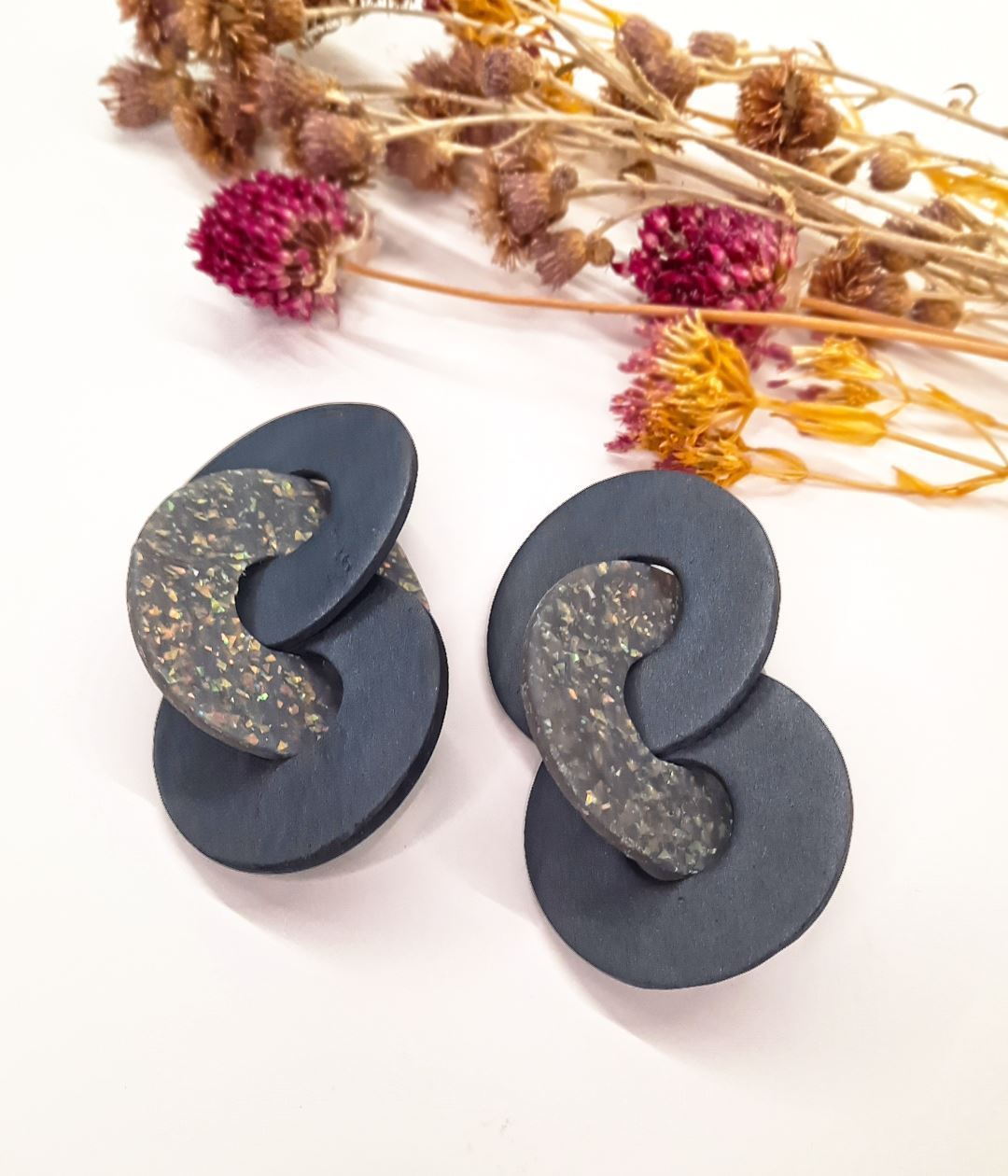 Χειροποίητα σκουλαρίκια σε σχέδιο αλυσίδα τρισδιάστατο από πολυμερικο πηλό, πολύ μεγάλο μέγεθος σε πολλά χρώματα. Στο πίσω μέρος κλείνει με ατσάλινο καρφί και επίχριση η επάργυρη πεταλούδα.