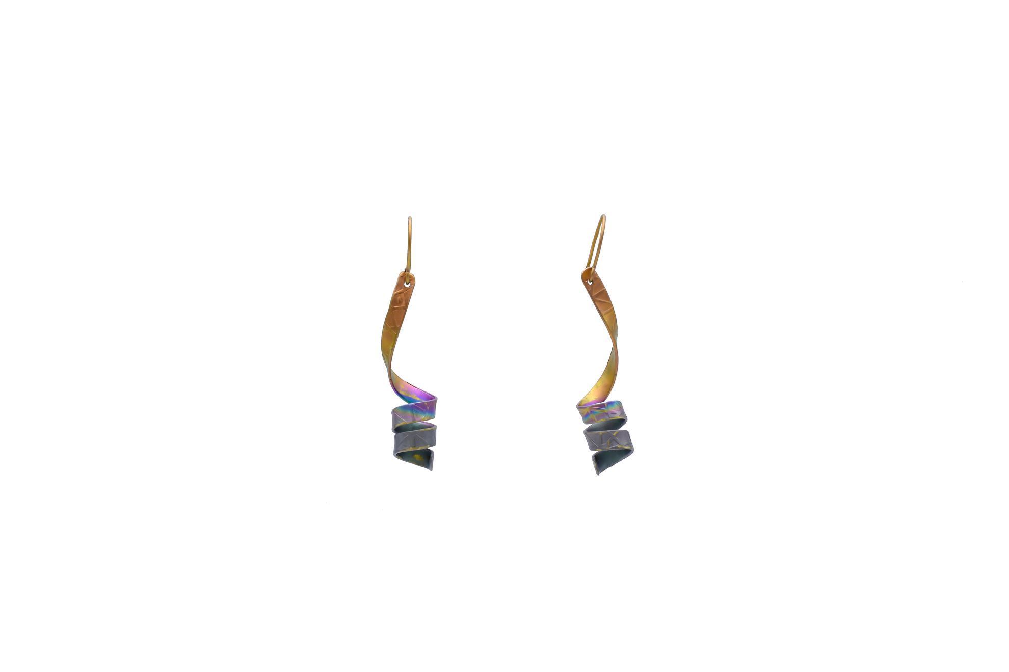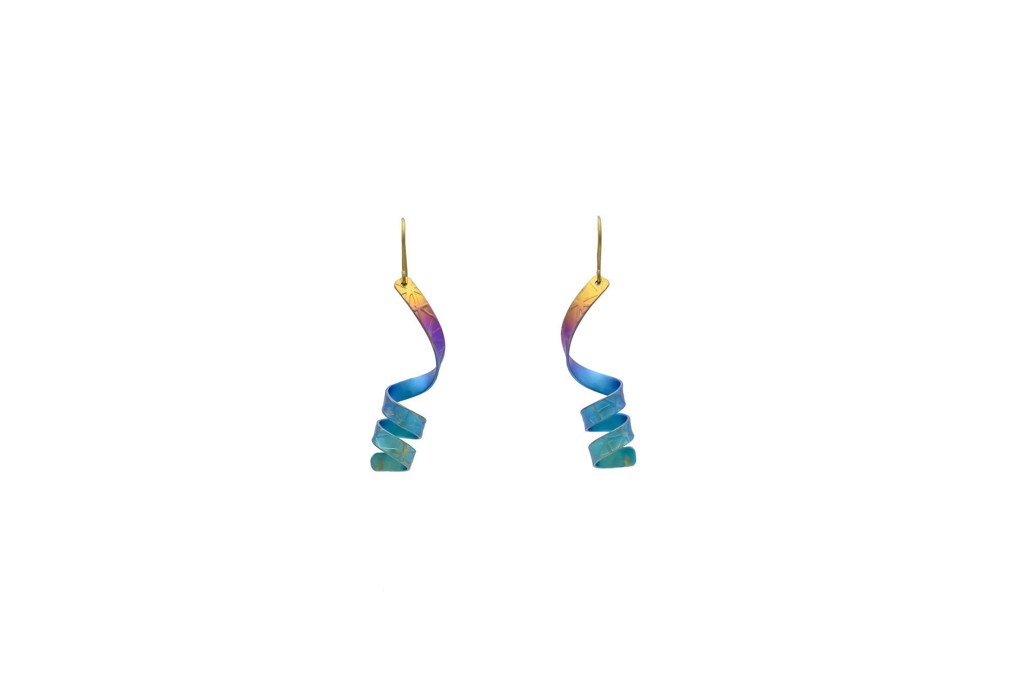 Anodized Titanium Ribbon Twirl Drop Dangle Earrings