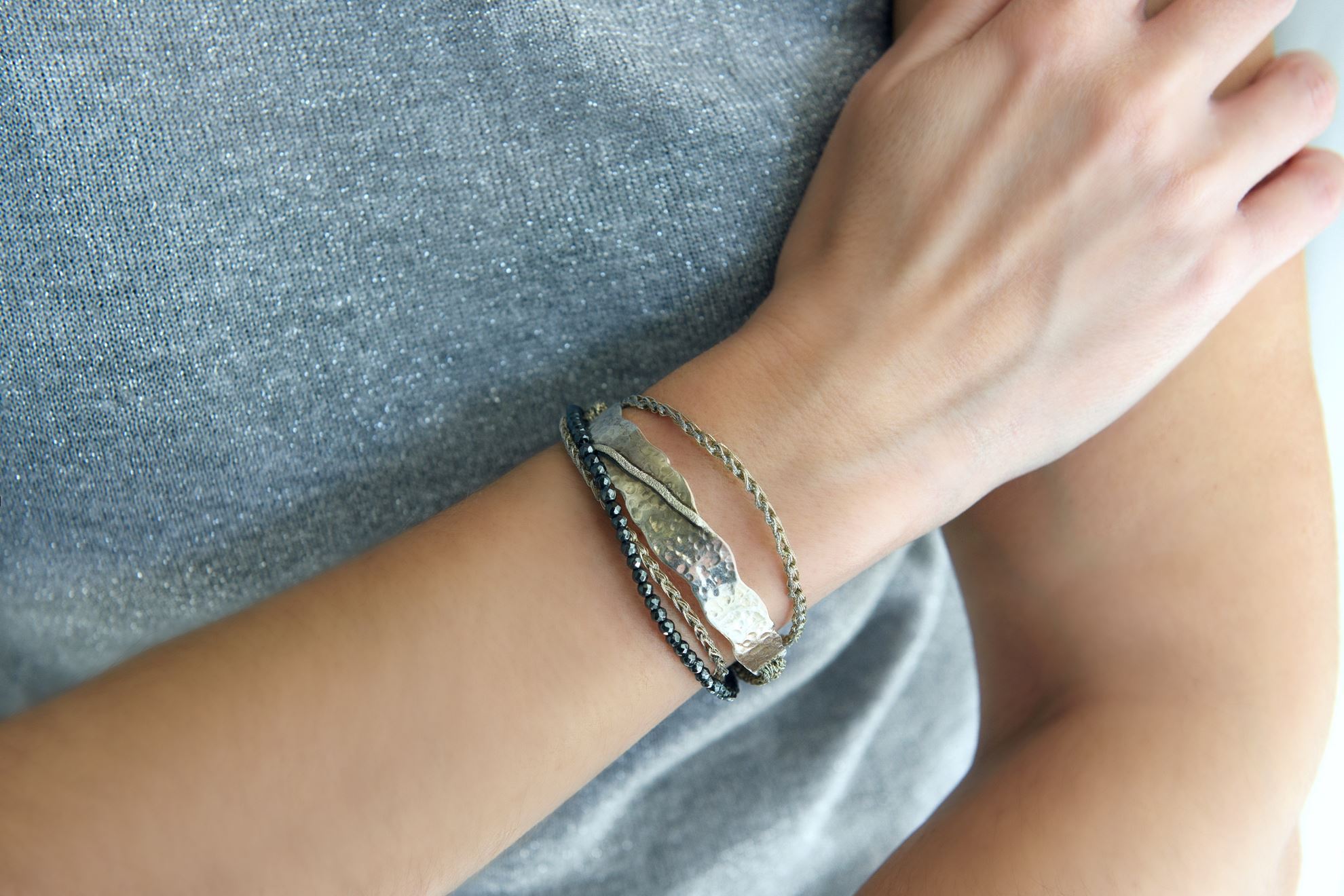 Sterling silver bracelet, handknitted with special jewellery thread and silver element and haematites.