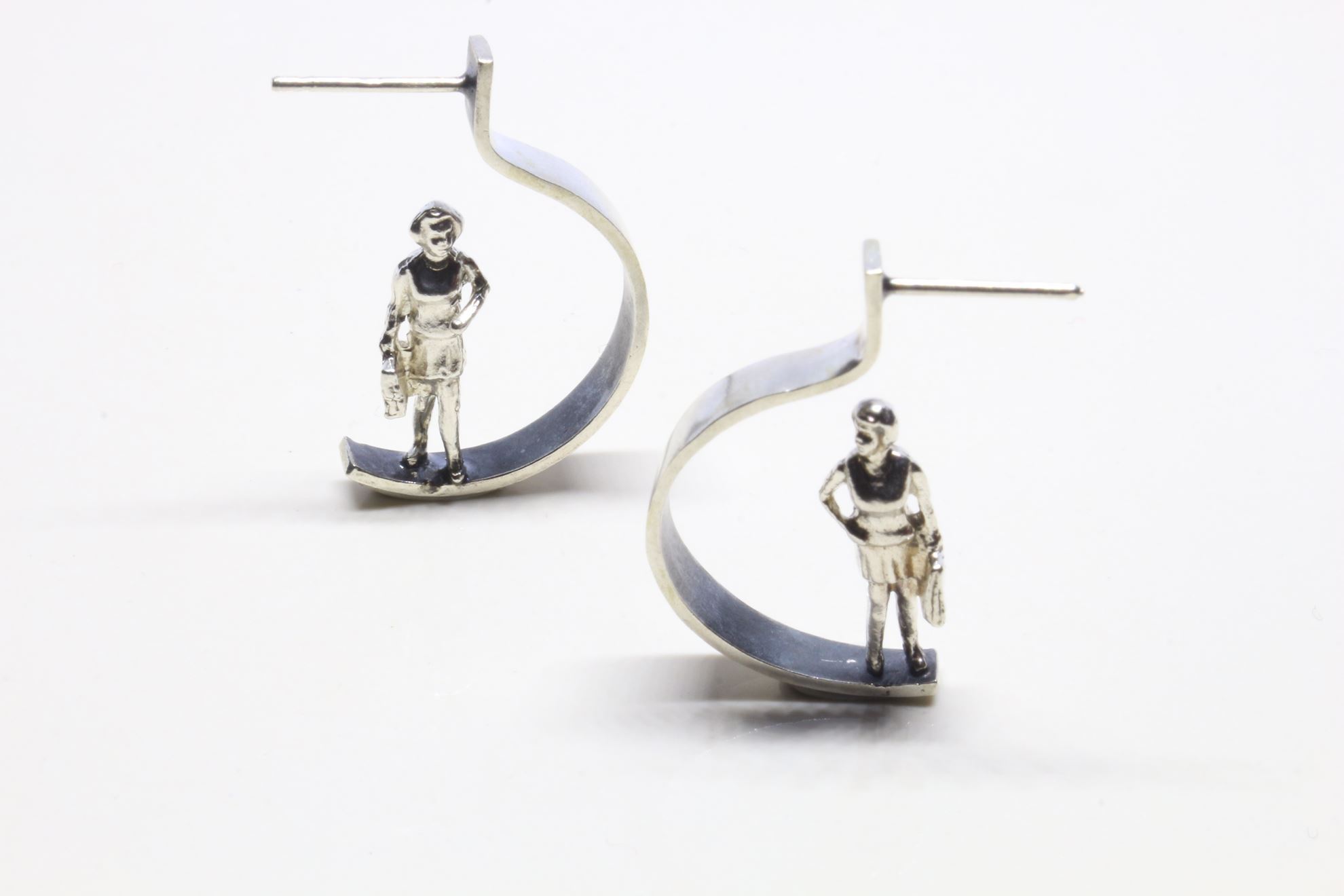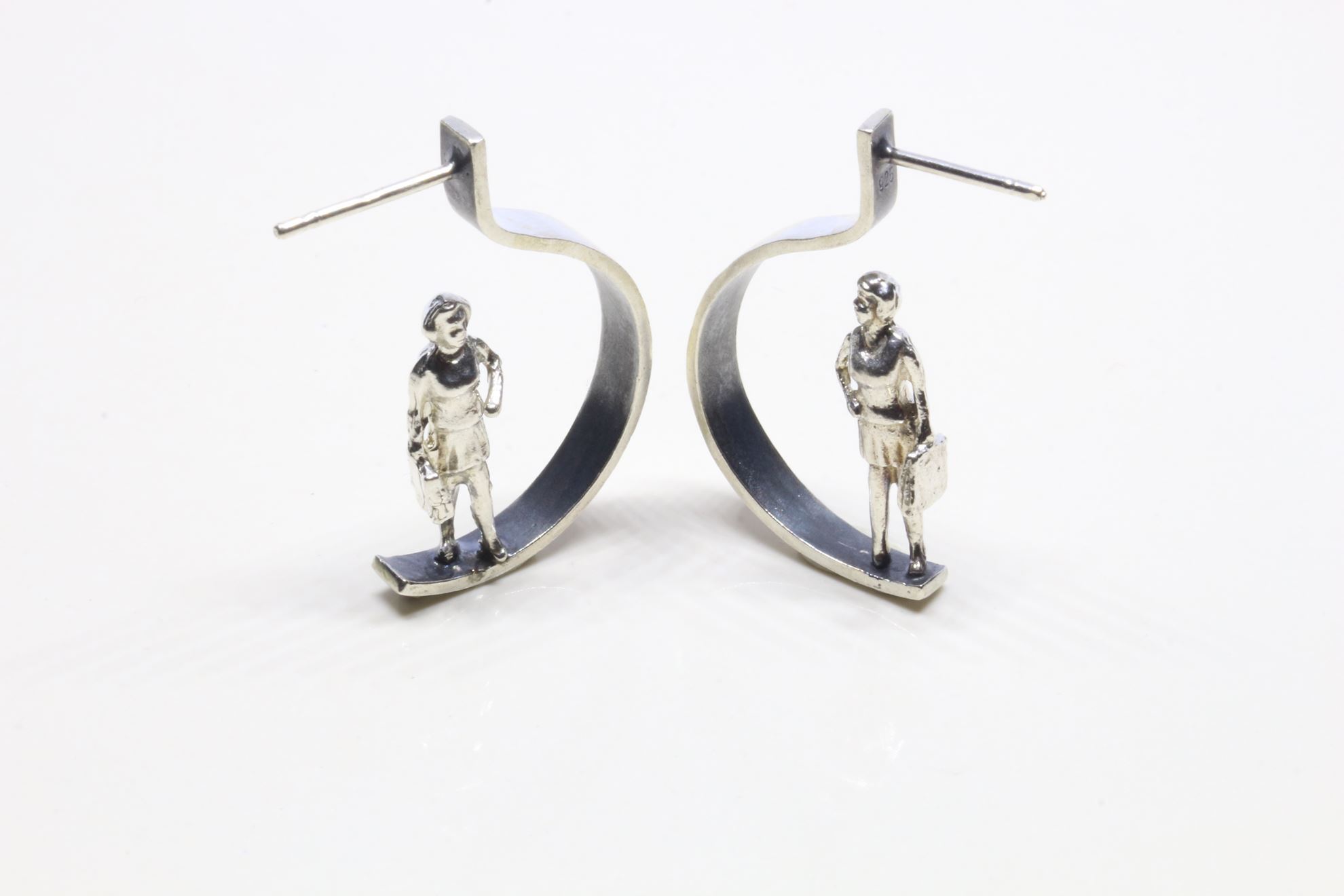 Ασημένια ,οξυδωμένα σκουλαρίκια από την σειρά "microcosmos of my bench". Διαστάσεις 3cm*1,5cm