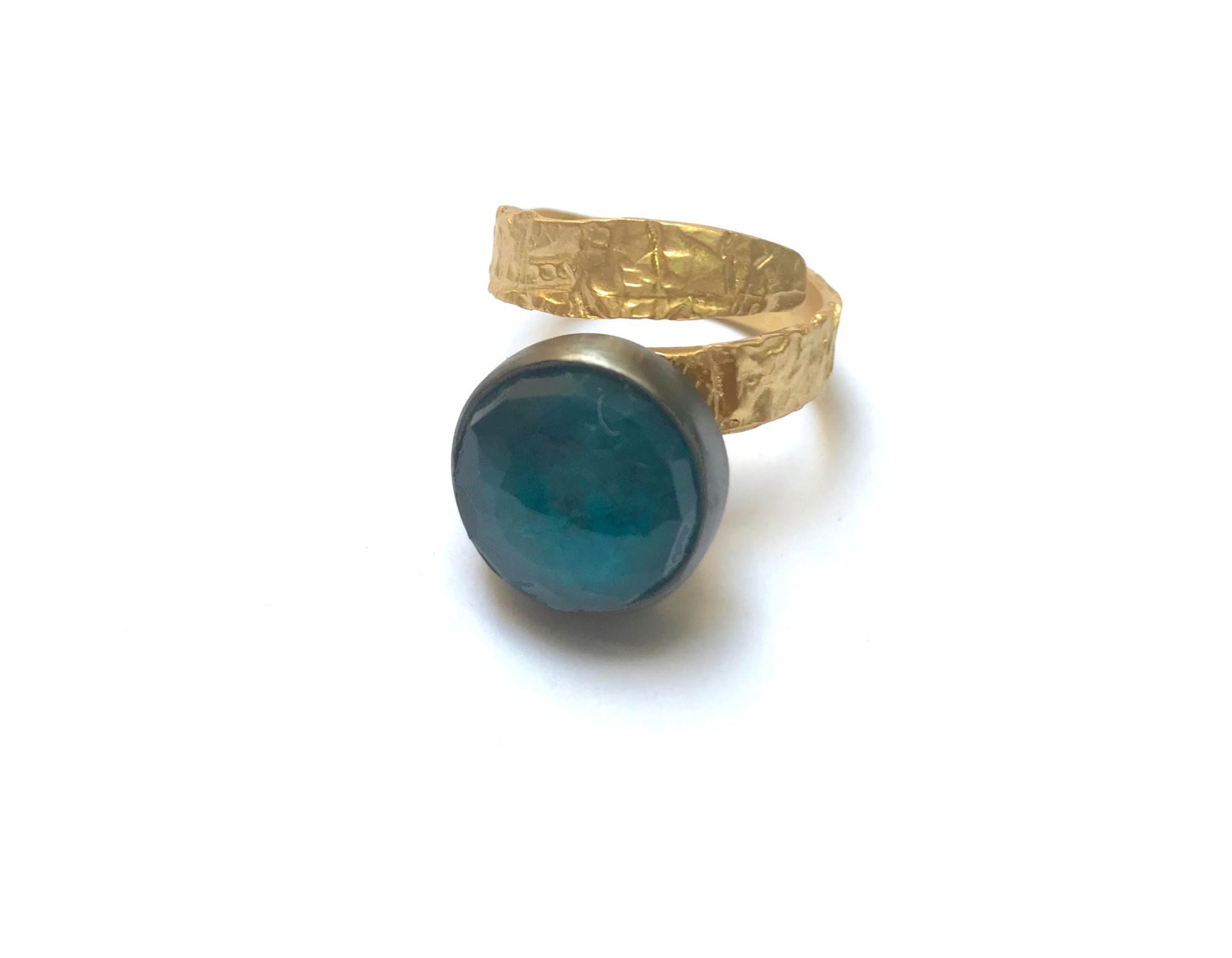 Δαχτυλίδι από ασήμι 925, επίχρυσο, με μαύρο ρόδιο και απατίτη 15mm ντουμπλέτα. Ρυθμιζόμενο νούμερο