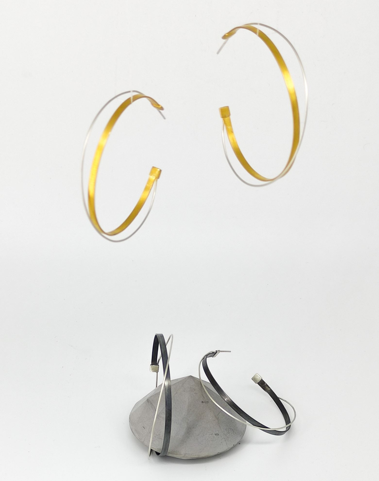 Σκουλαρίκια από ασήμι 925ο σε επίχρυσο και οξείδωση. Διάμετρος κρίκου: 6cm