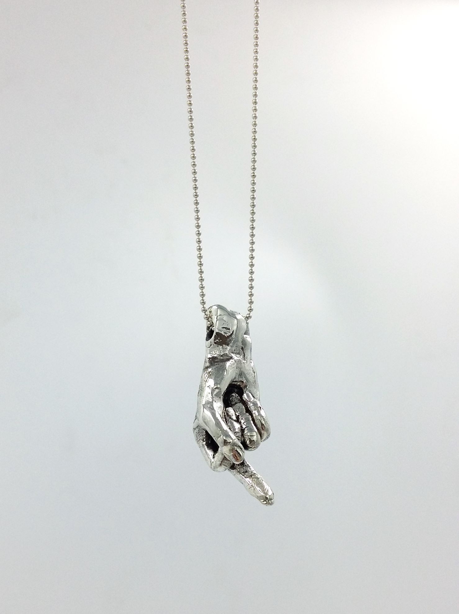 Finger Necklace Cast Silver 925 Chain 90cm / Black Cord 90cm