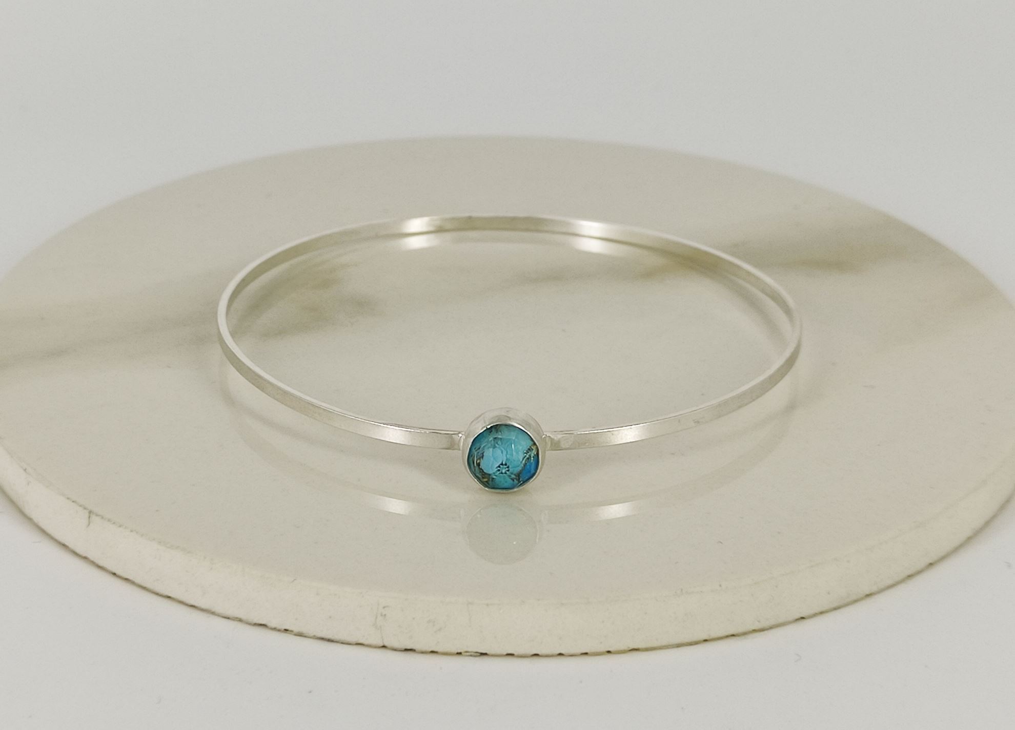 Βραχιόλι από ασήμι 925ο με ημιπολύτιμες πέτρες. Διάμετρος : 6.5cm