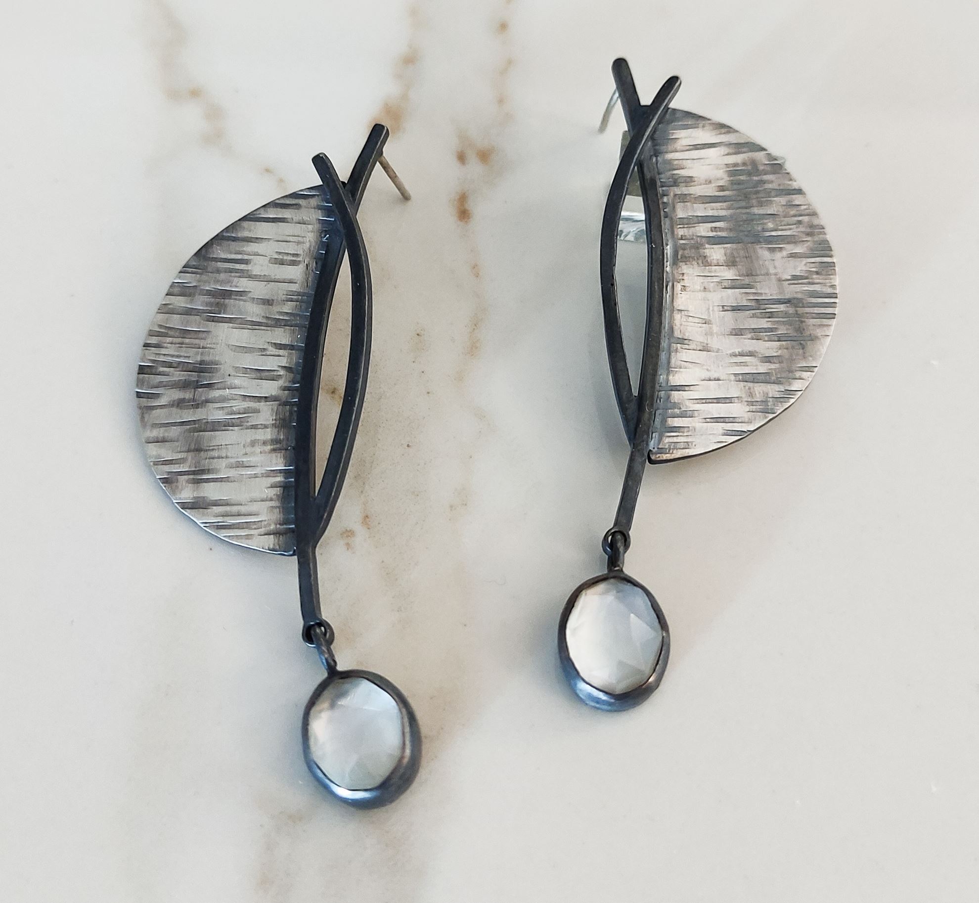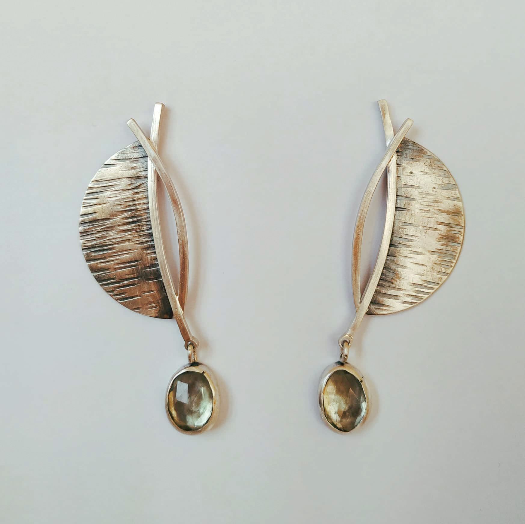Σκουλαρίκια από ασήμι 925ο και οξείδωση, με ημιπολύτιμες πέτρες. Μήκος : 6.5cm