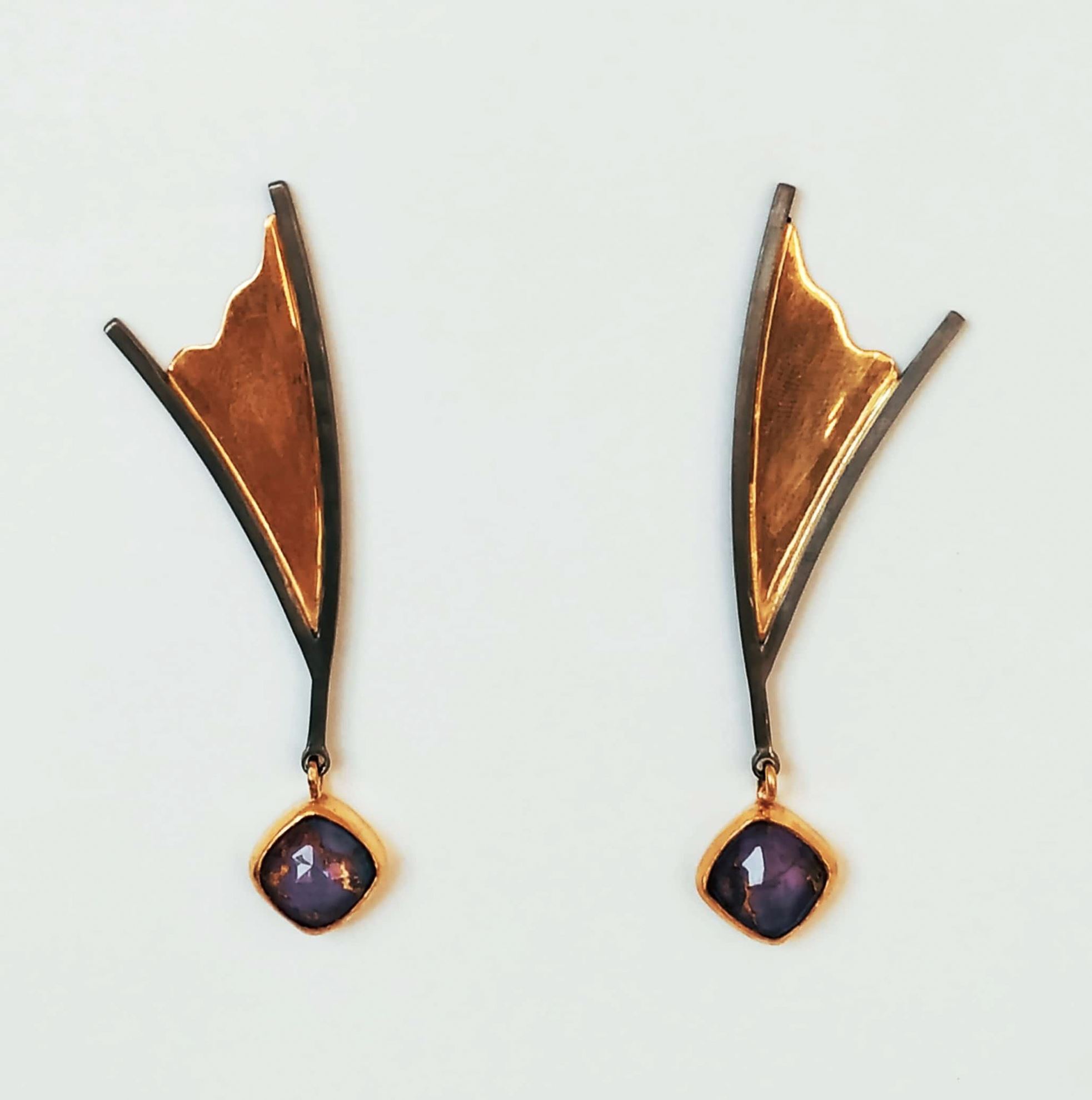 Σκουλαρίκια από ασήμι 925ο και οξείδωση, με ημιπολύτιμες πέτρες. Μήκος : 7cm
