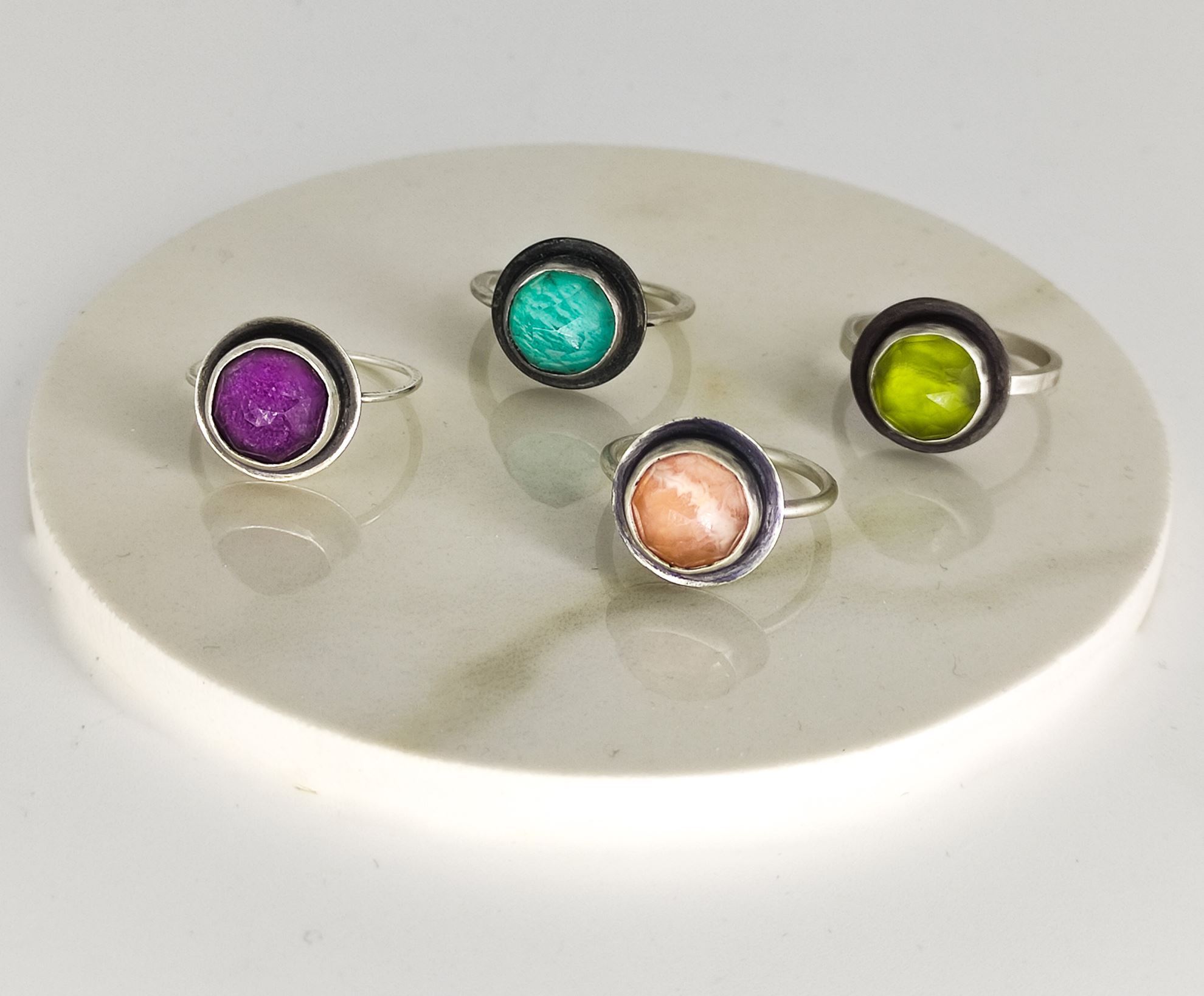 Δαχτυλίδι από ασήμι 925ο και οξείδωση, με ημιπολύτιμες πέτρες.