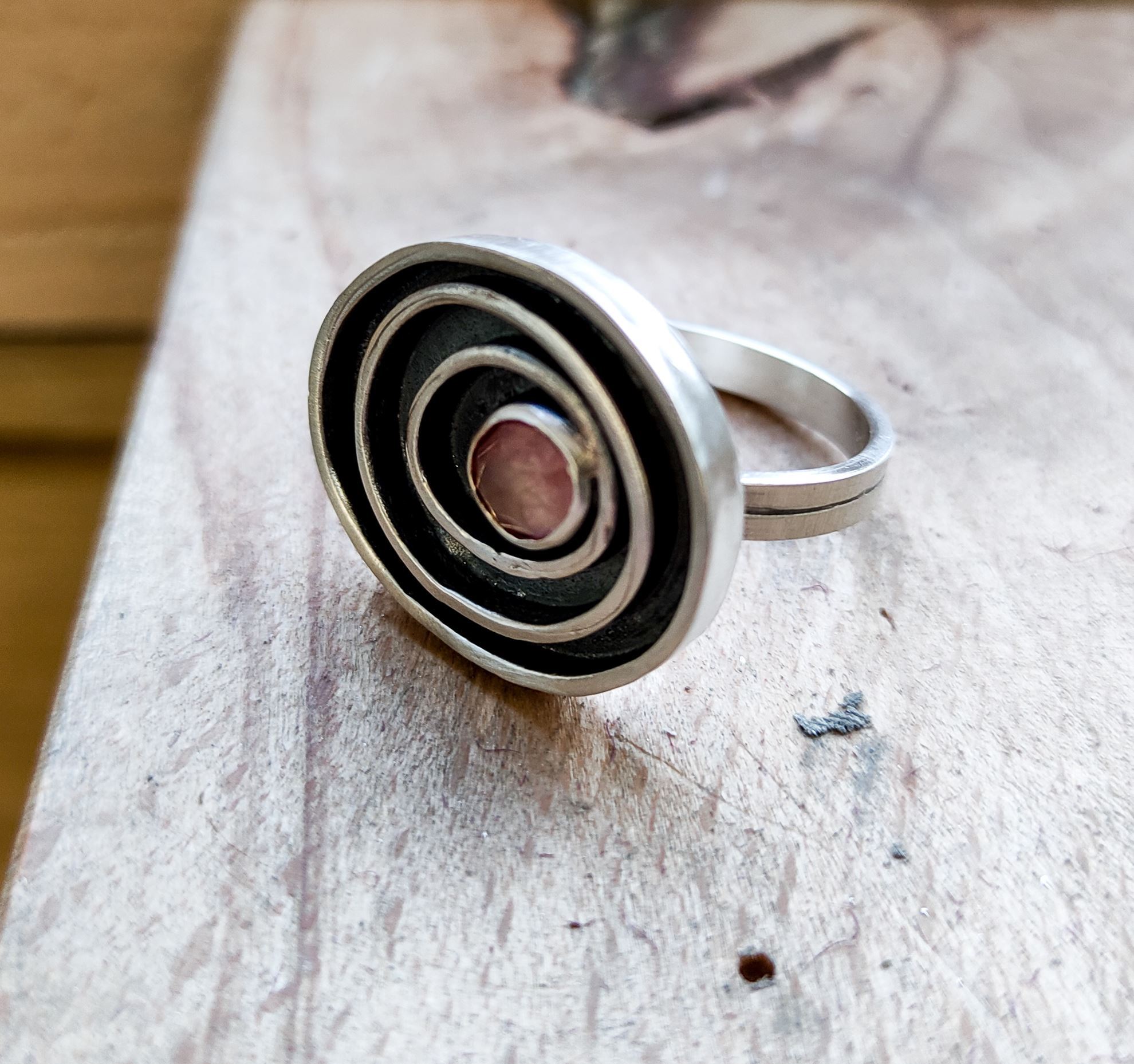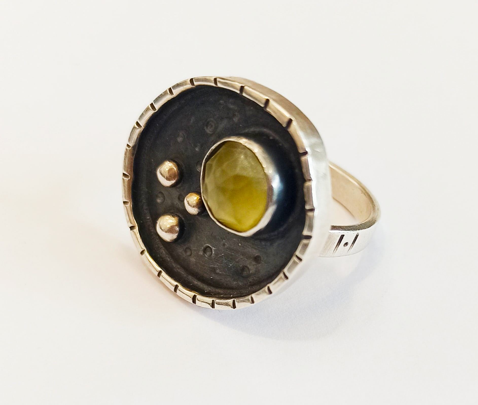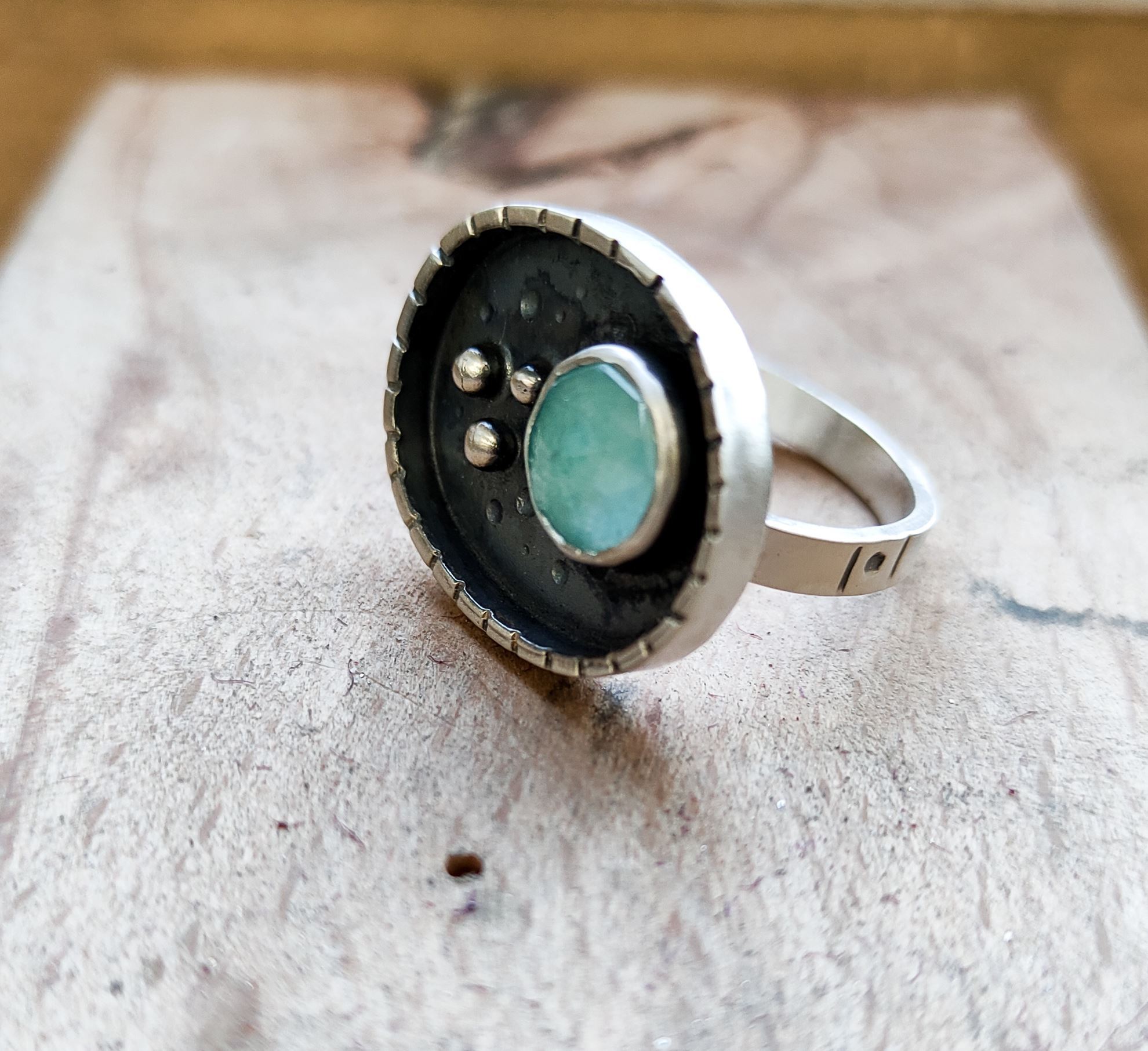 Δαχτυλίδι από ασήμι 925ο και οξείδωση, με ημιπολύτιμες πέτρες.
