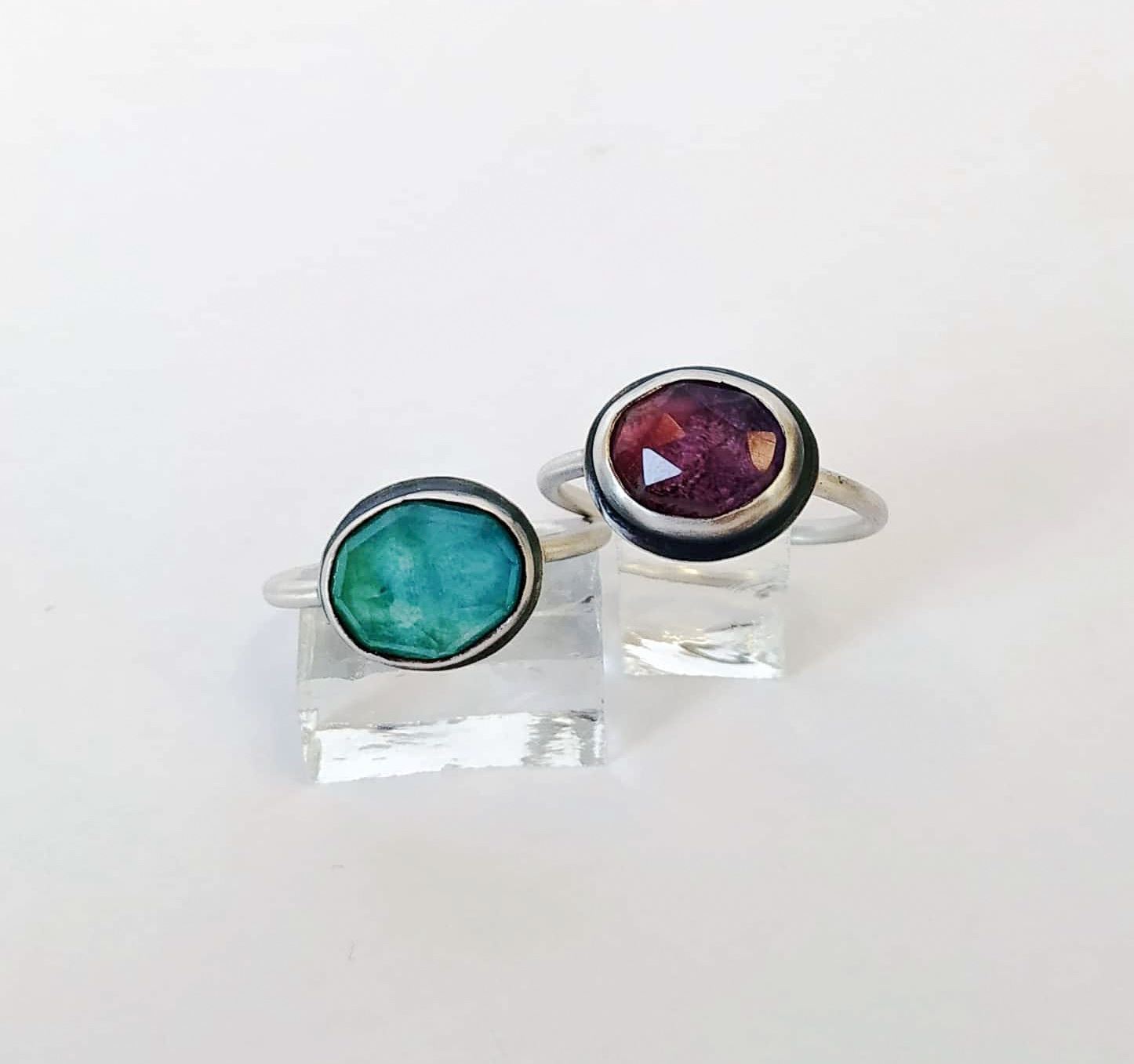 Δαχτυλίδι από ασήμι 925ο και οξείδωση, με ημιπολύτιμες πέτρες.
