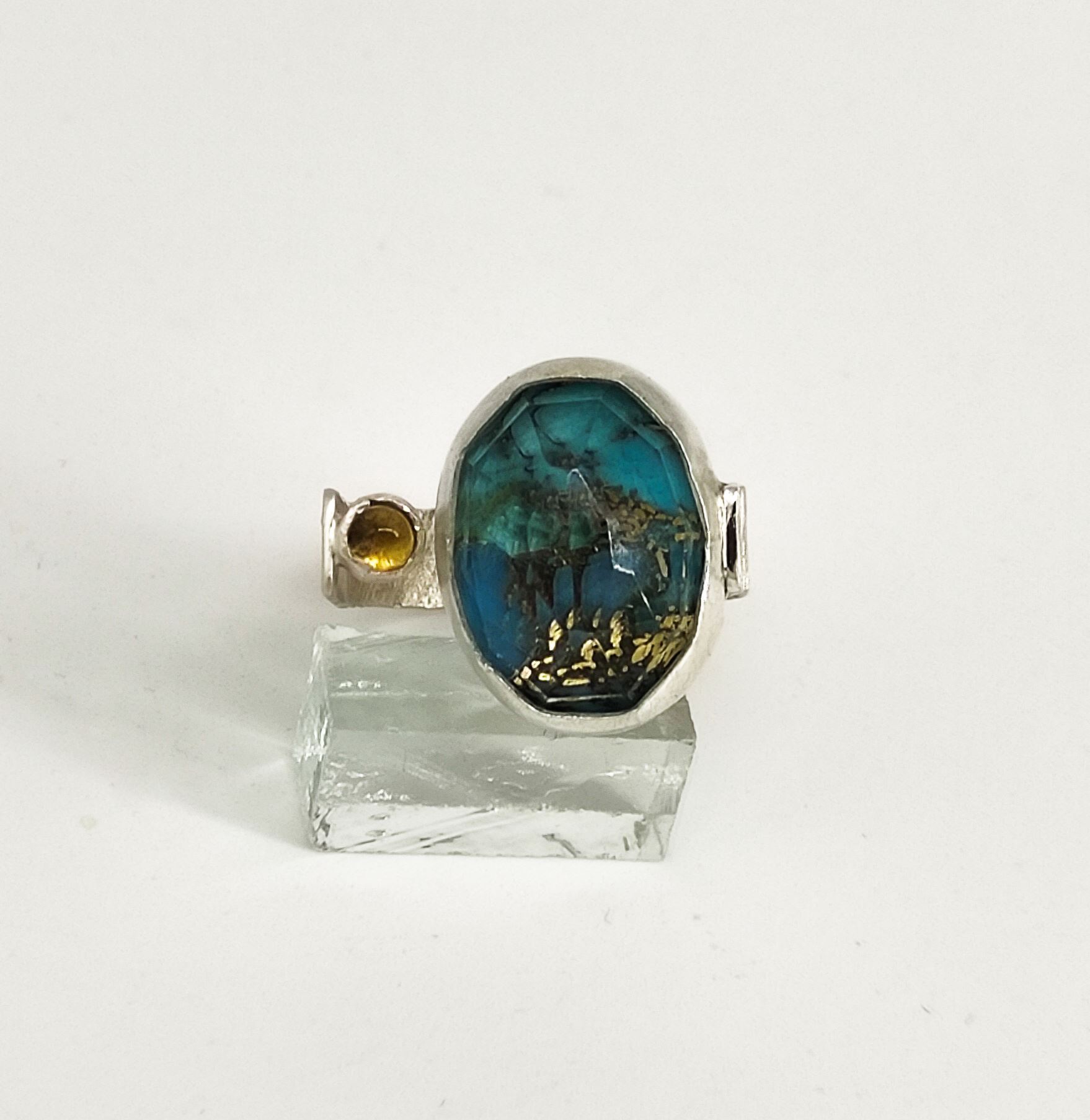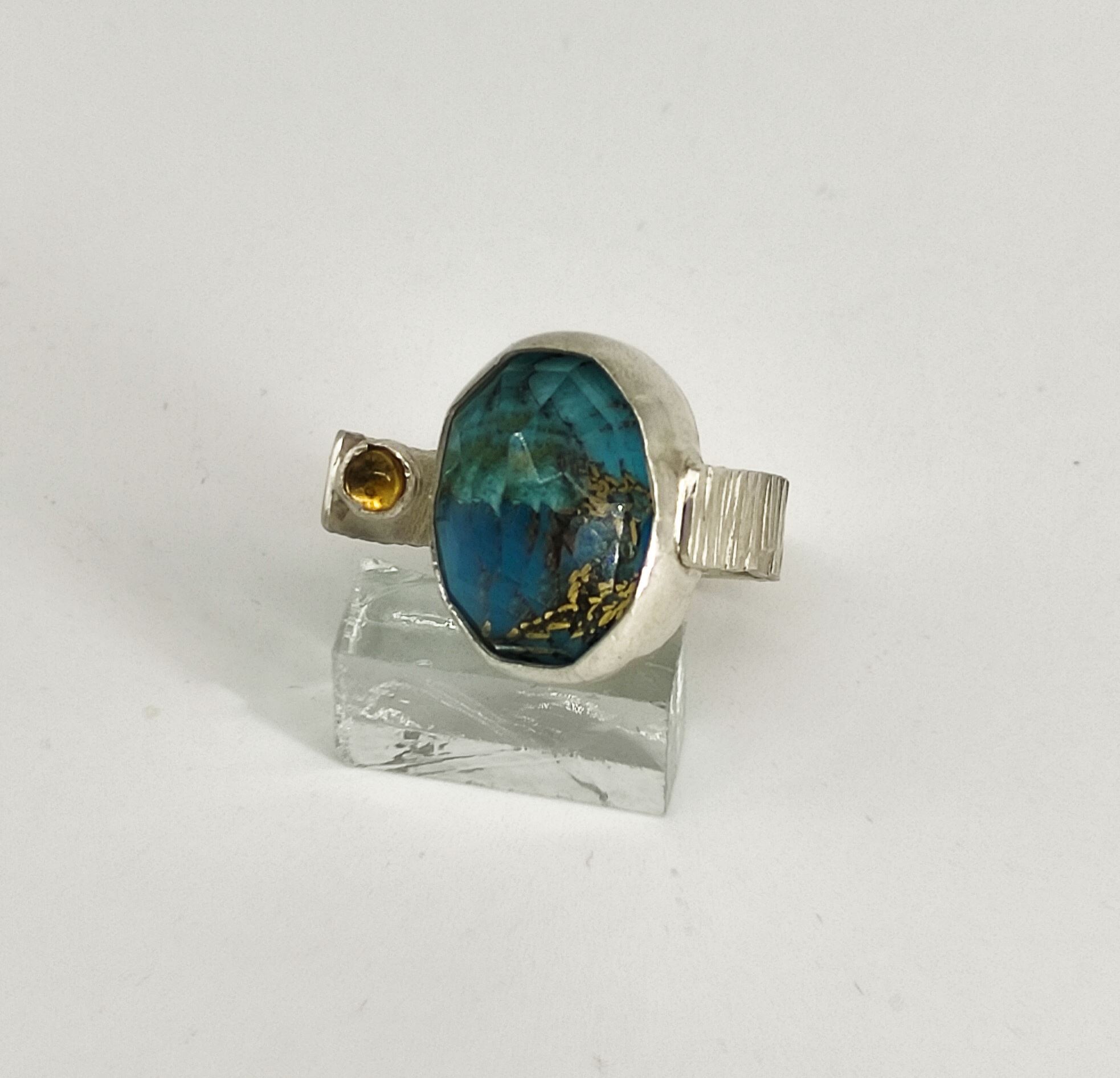Δαχτυλίδι από ασήμι 925ο και οξείδωση, με ημιπολύτιμες πέτρες.