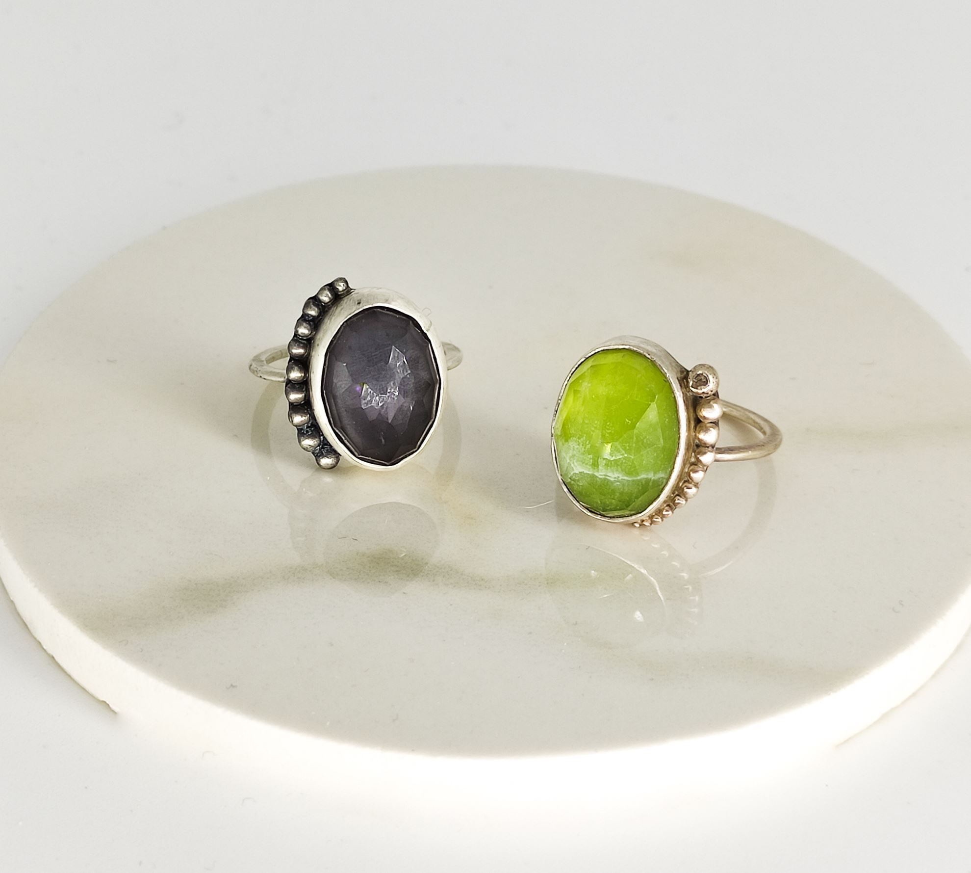 Δαχτυλίδι από ασήμι 925ο και οξείδωση, με ημιπολύτιμες πέτρες.
