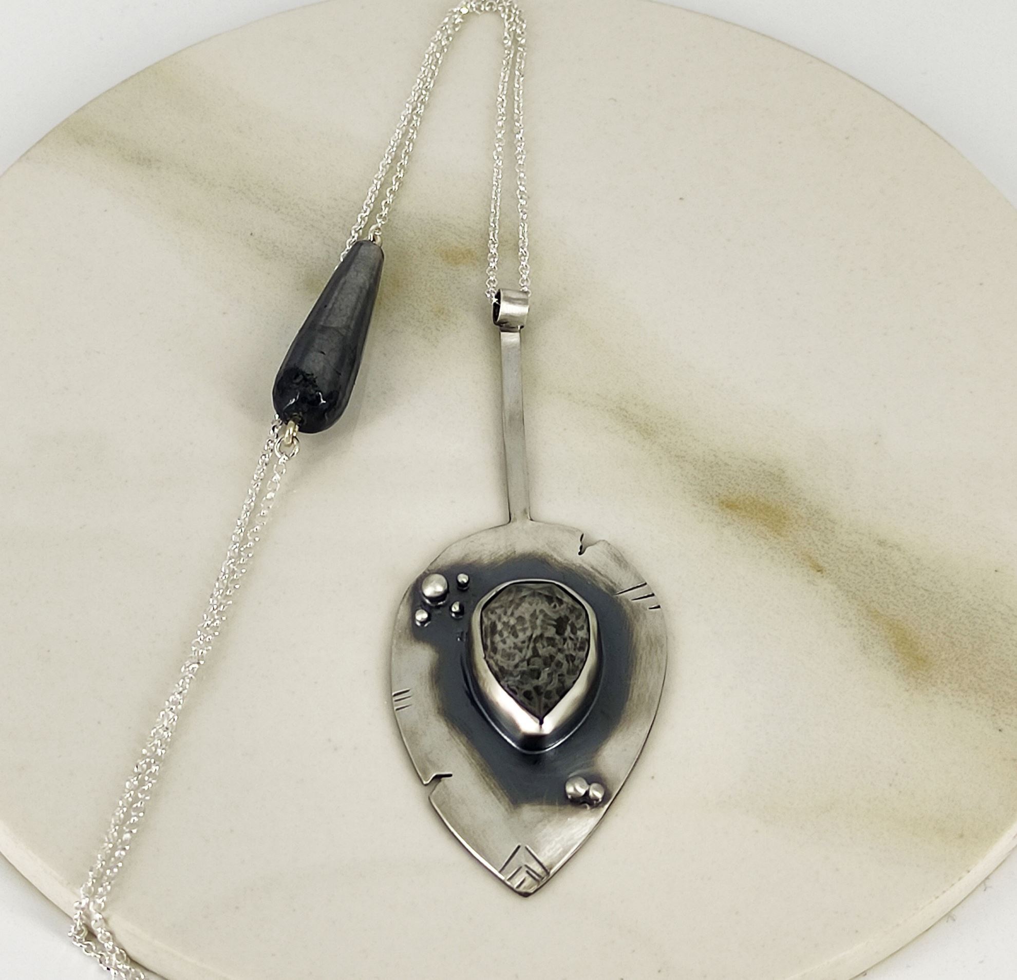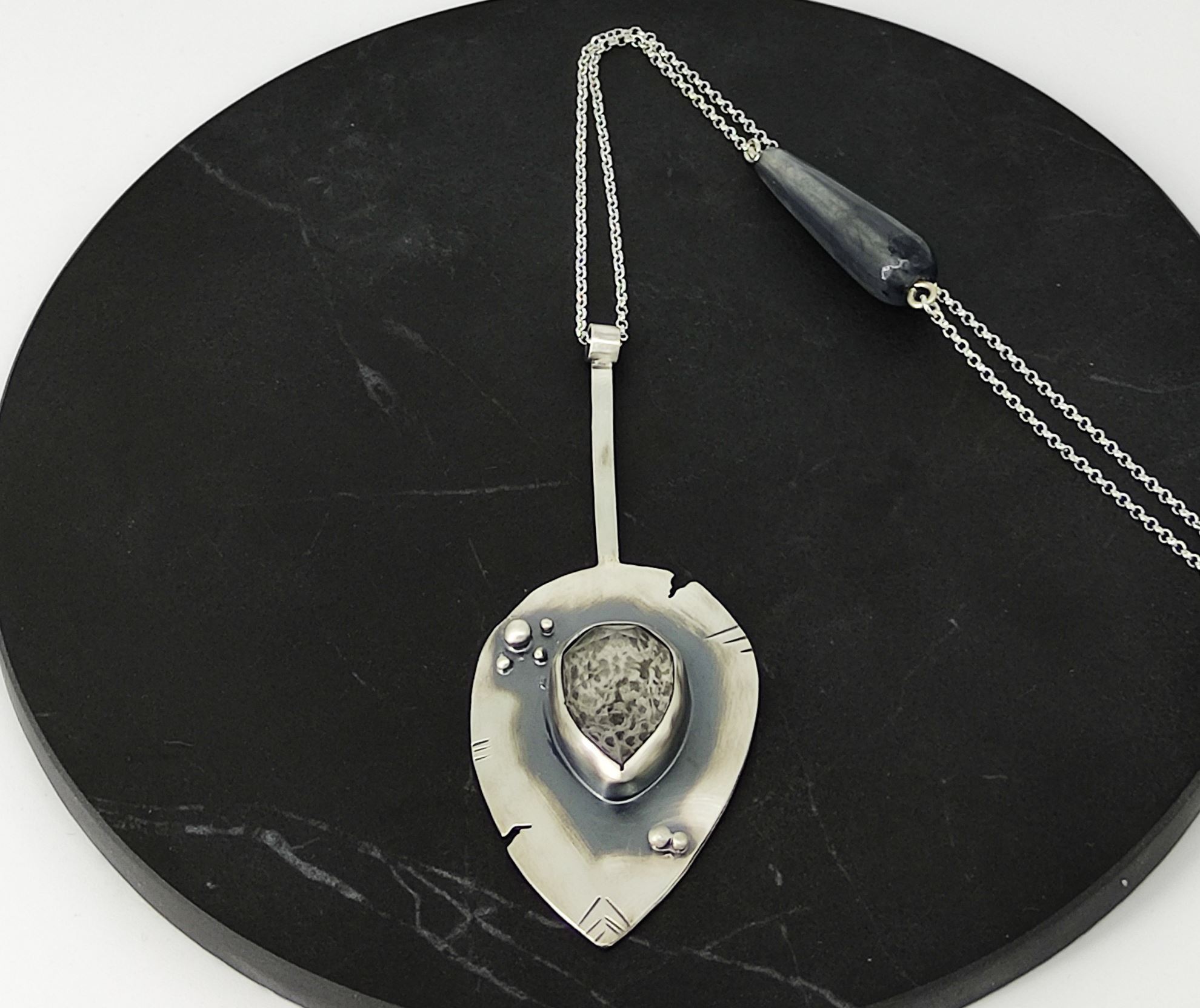 Κολιέ από ασήμι 925ο και οξείδωση, με ημιπολύτιμες πέτρες. Μήκος αλυσίδας : 80cm