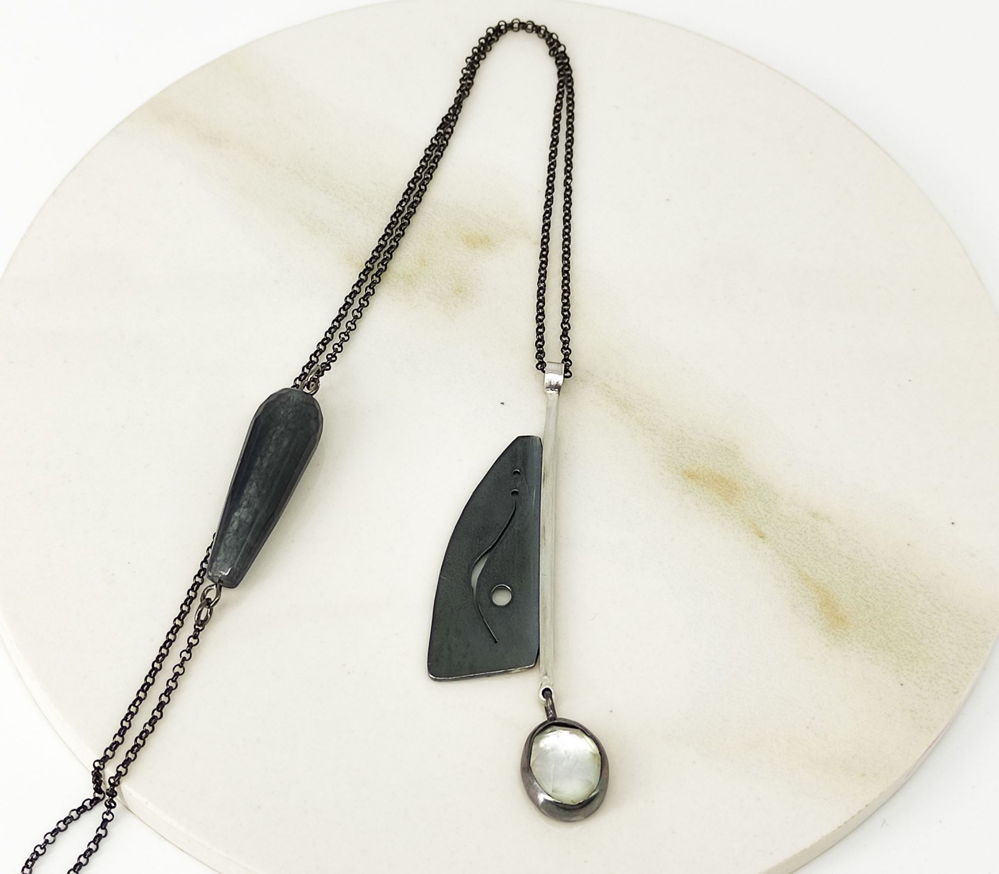 Κολιέ από ασήμι 925ο και οξείδωση, με ημιπολύτιμες πέτρες. Μήκος αλυσίδας : 80cm