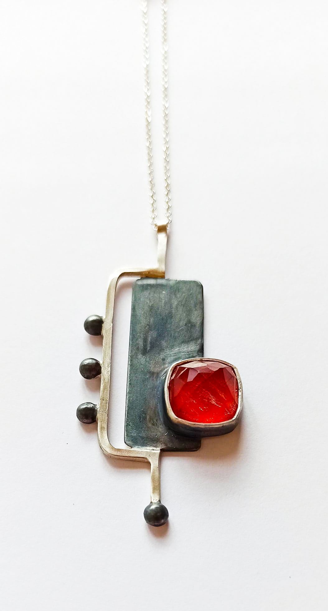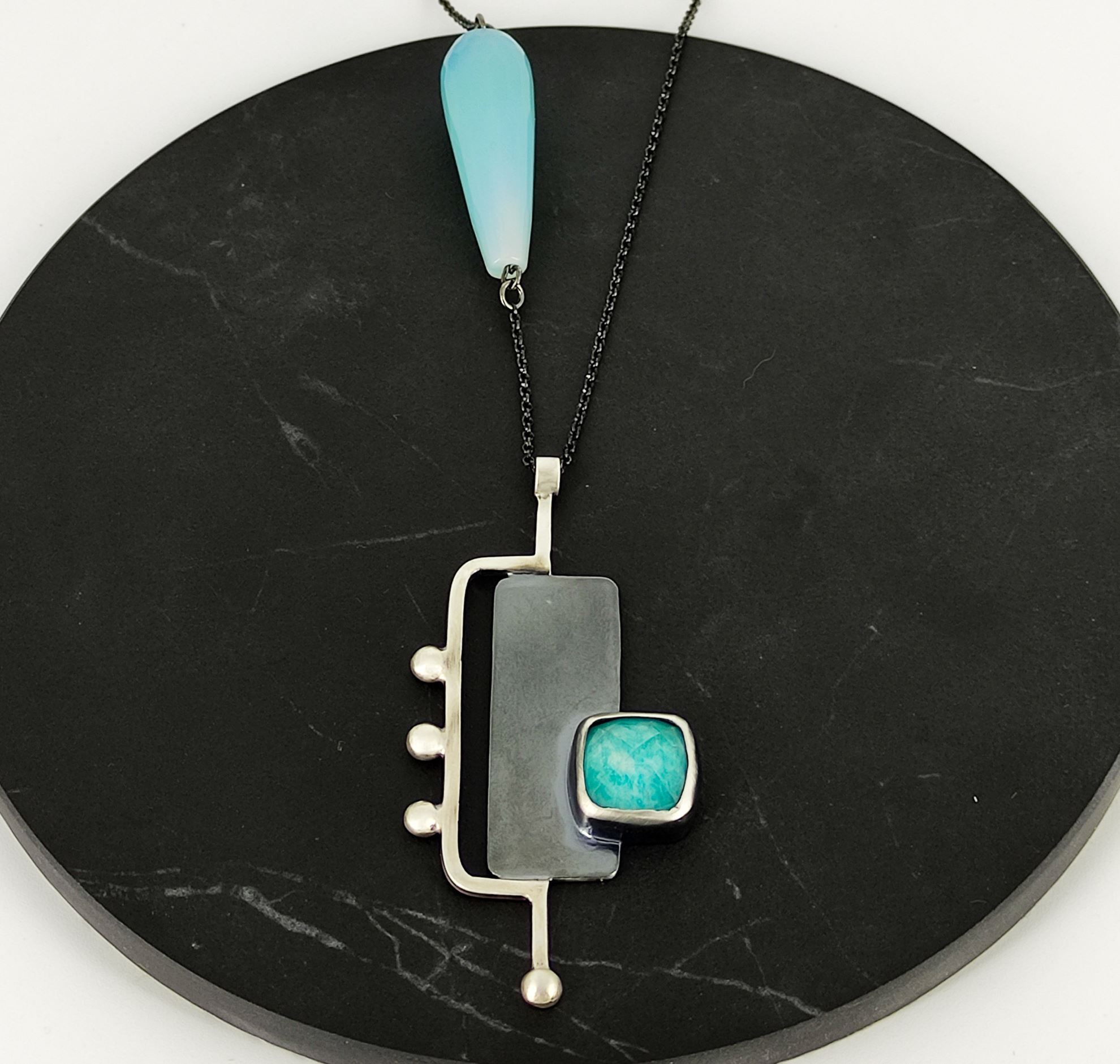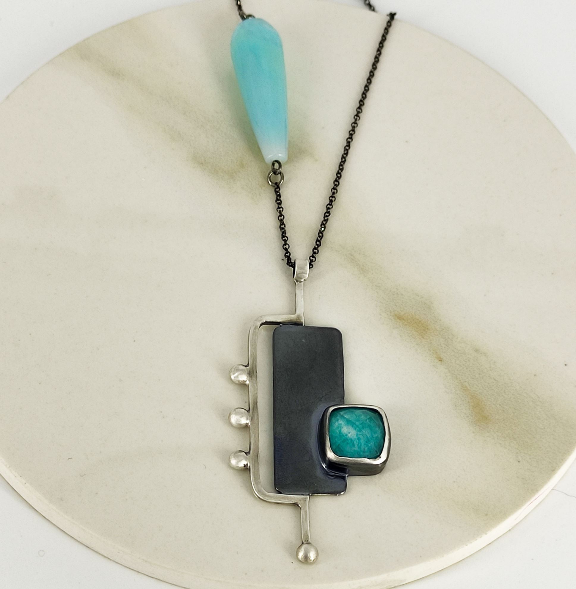 Κολιέ από ασήμι 925ο και οξείδωση, με ημιπολύτιμες πέτρες. Μήκος αλυσίδας : 80cm