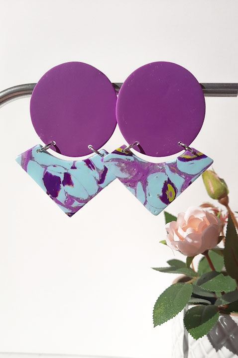 Εντυπωσιακά μεγάλα γεωμετρικά σκουλαρίκια με την τεχνική Mocume από πολυμερικο πηλό, πάρα πολύ ελαφρύ με επάργυρο η επίχρυσο κούμπωμα και ατσάλινο καρφάκι.