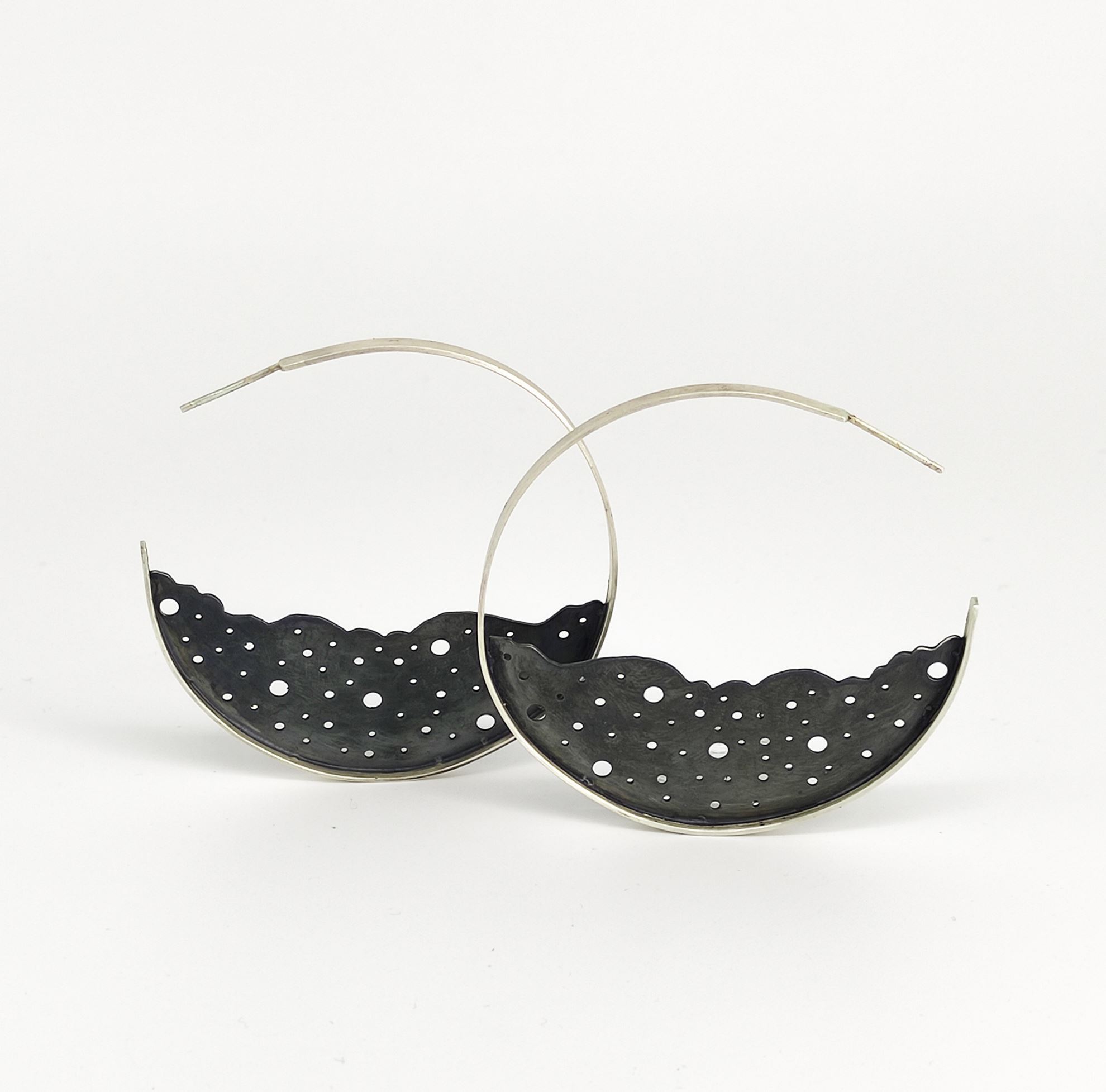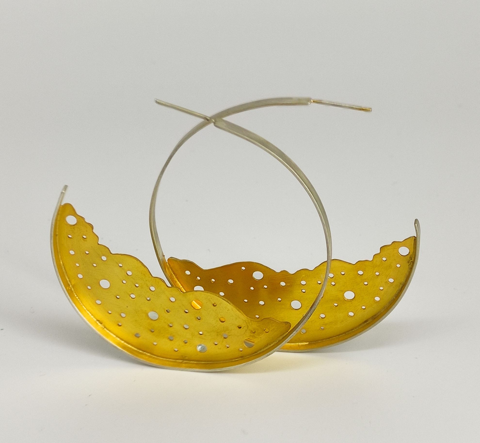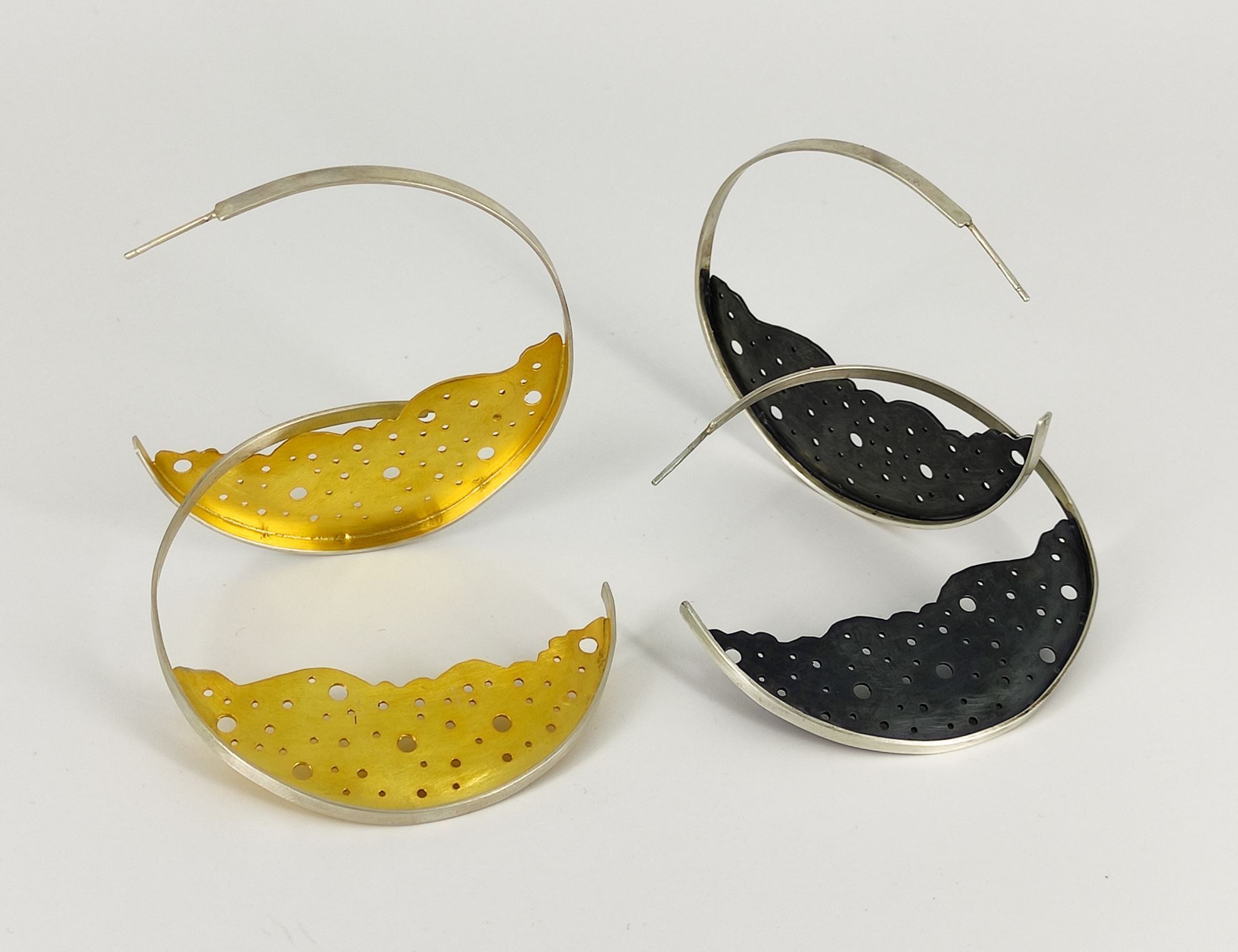 Σκουλαρίκια από ασήμι 925ο σε επίχρυσο και οξείδωση. Διάμετρος κρίκου: 6cm