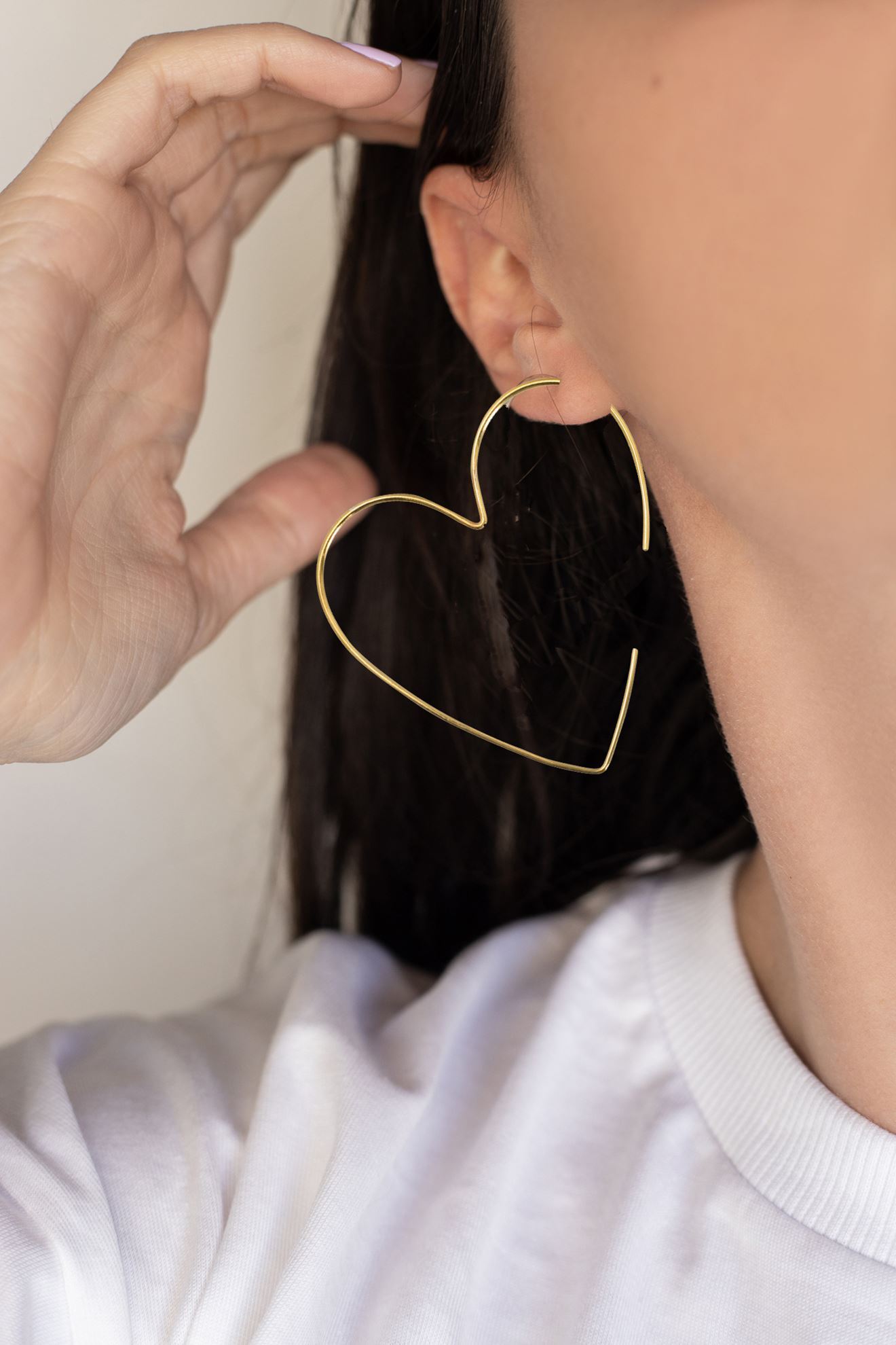 Σκουλαρίκια σε σχήμα καρδία από σύρμα, επιροδιωμένο