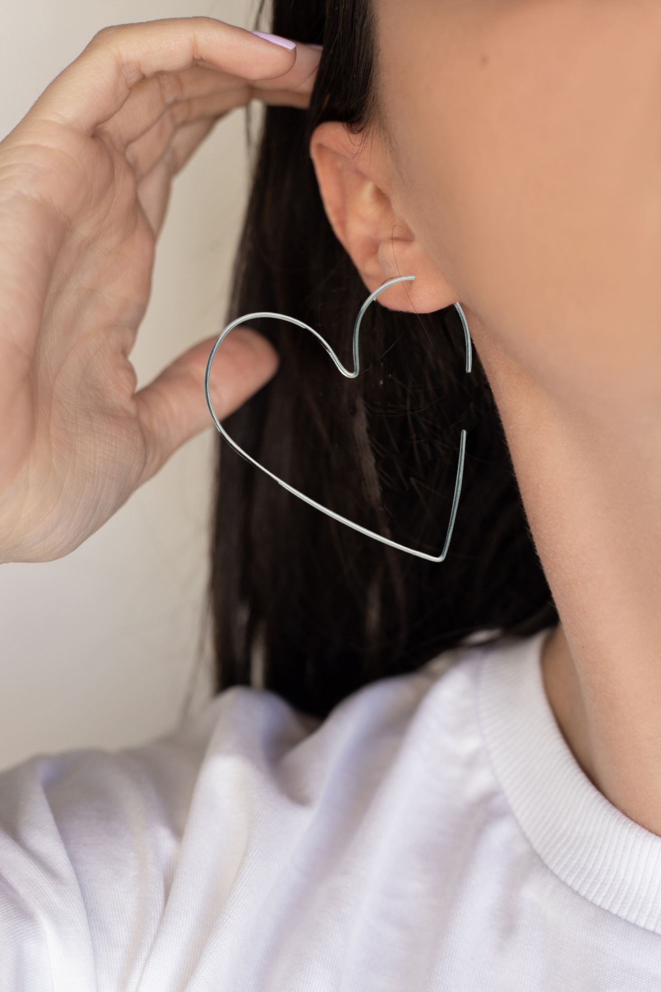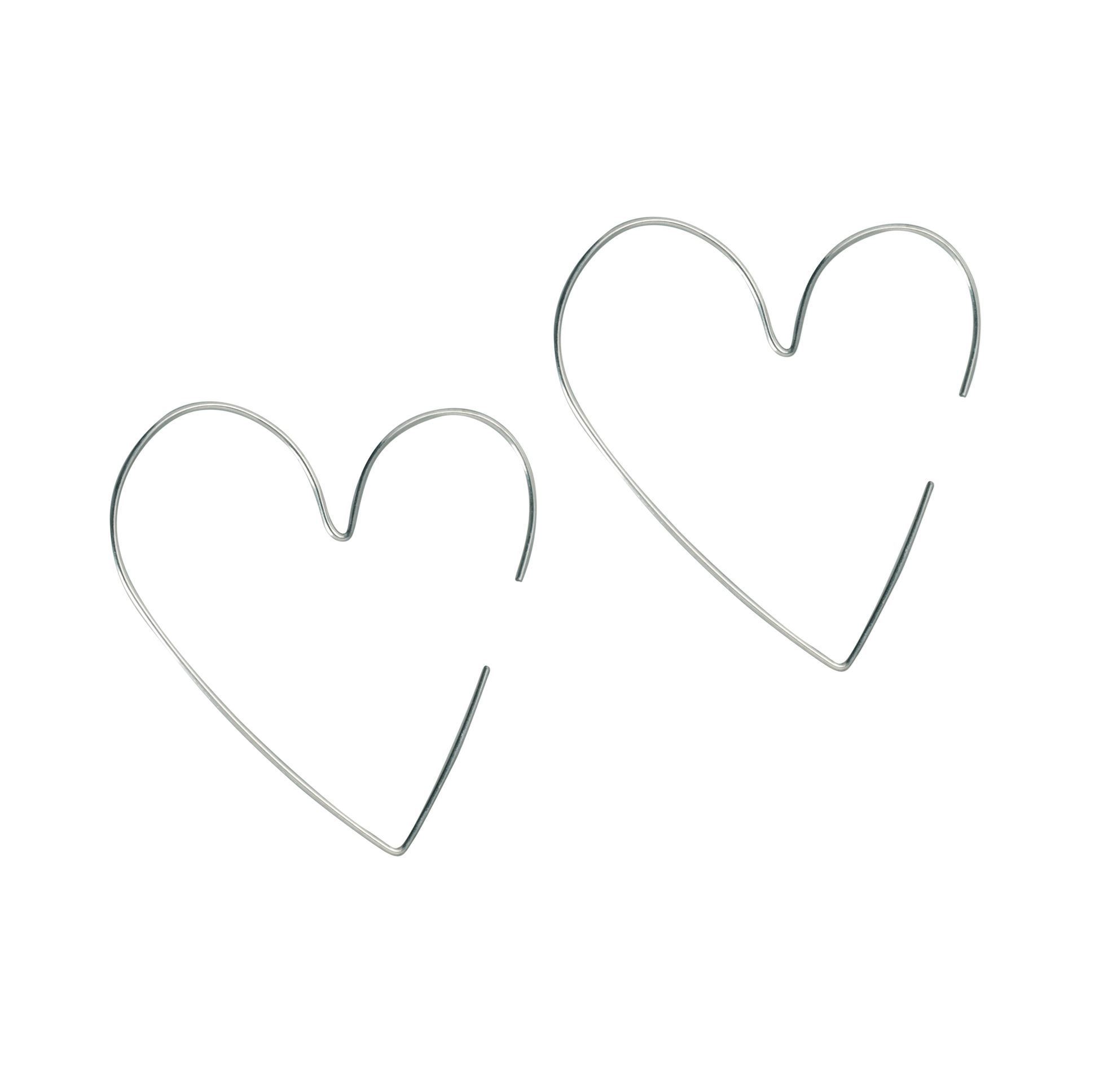 Σκουλαρίκια σε σχήμα καρδία από σύρμα, ασημένιο