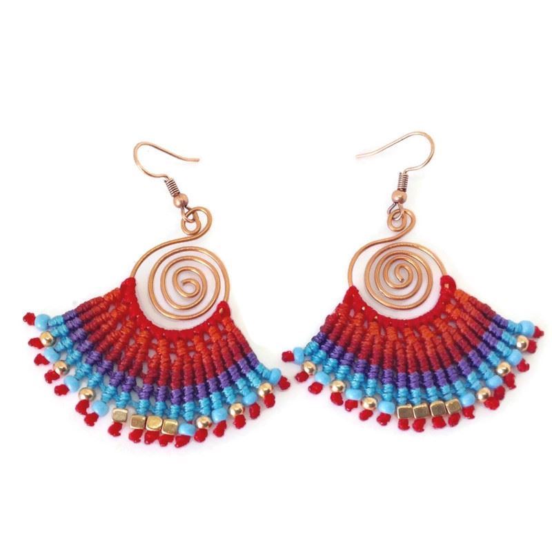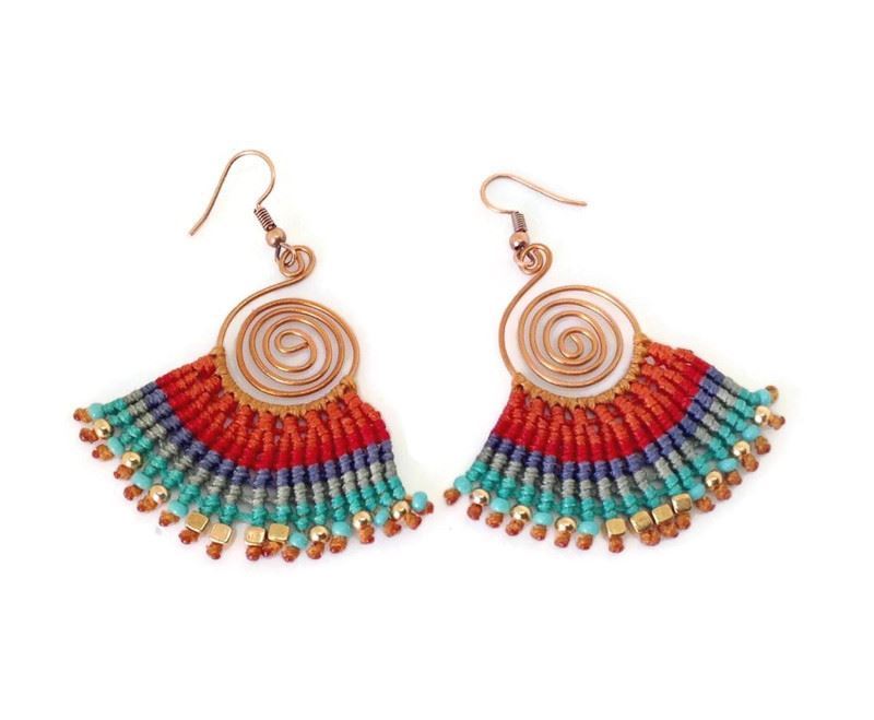 Χειροποίητα σκουλαρίκια με την τεχνική μακραμέ με μεταλλικά στοιχεία Τα μεταλλικά στοιχεία είναι nickel-free, κατασκευασμένα από ποιοτικά και υπoαλλεργικά υλικά. Tα ασημένια άγκιστρα/κουμπώματα στα σκουλαρίκια παρέχονται με επιπλέον χρέωση 1€