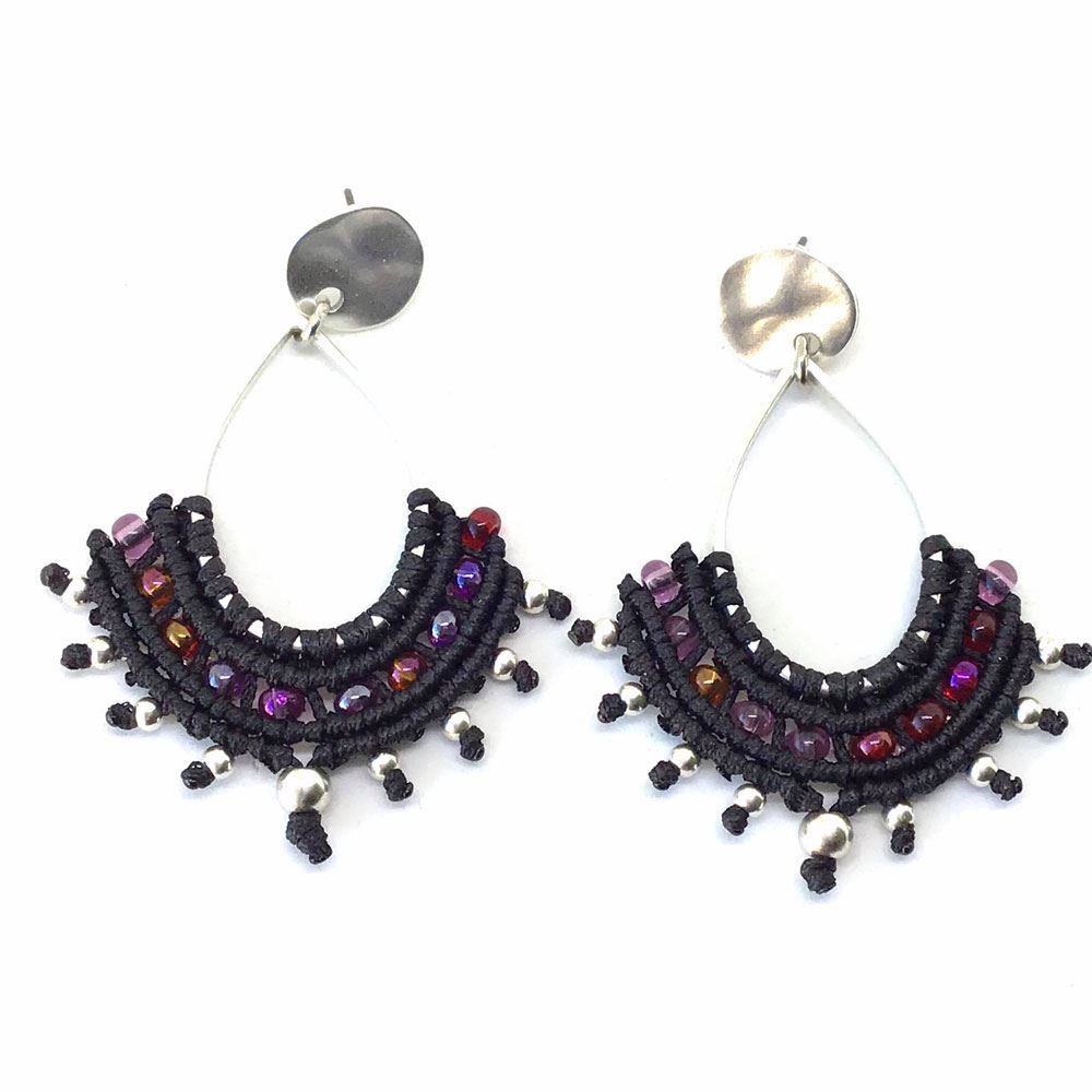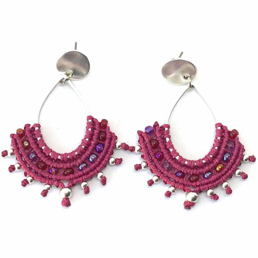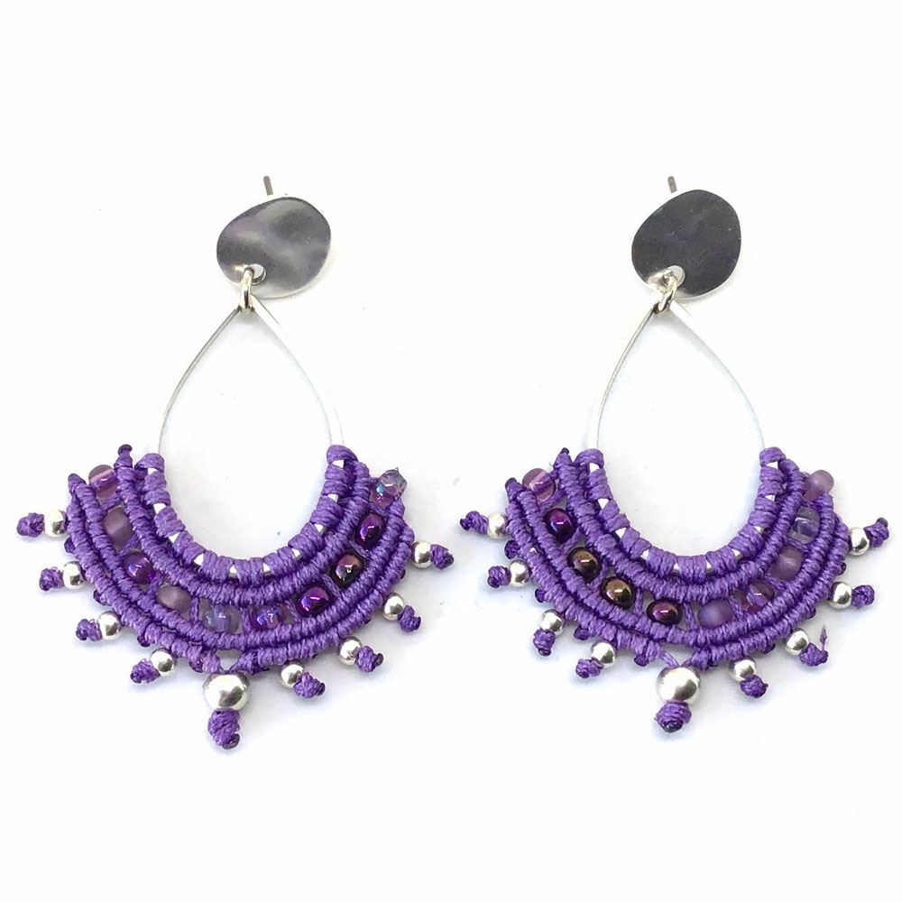 Χειροποίητα σκουλαρίκια με την τεχνική μακραμέ με μεταλλικά στοιχεία Τα μεταλλικά στοιχεία είναι nickel-free, κατασκευασμένα από ποιοτικά και υπoαλλεργικά υλικά. Tα ασημένια άγκιστρα/κουμπώματα στα σκουλαρίκια παρέχονται με επιπλέον χρέωση 1€
