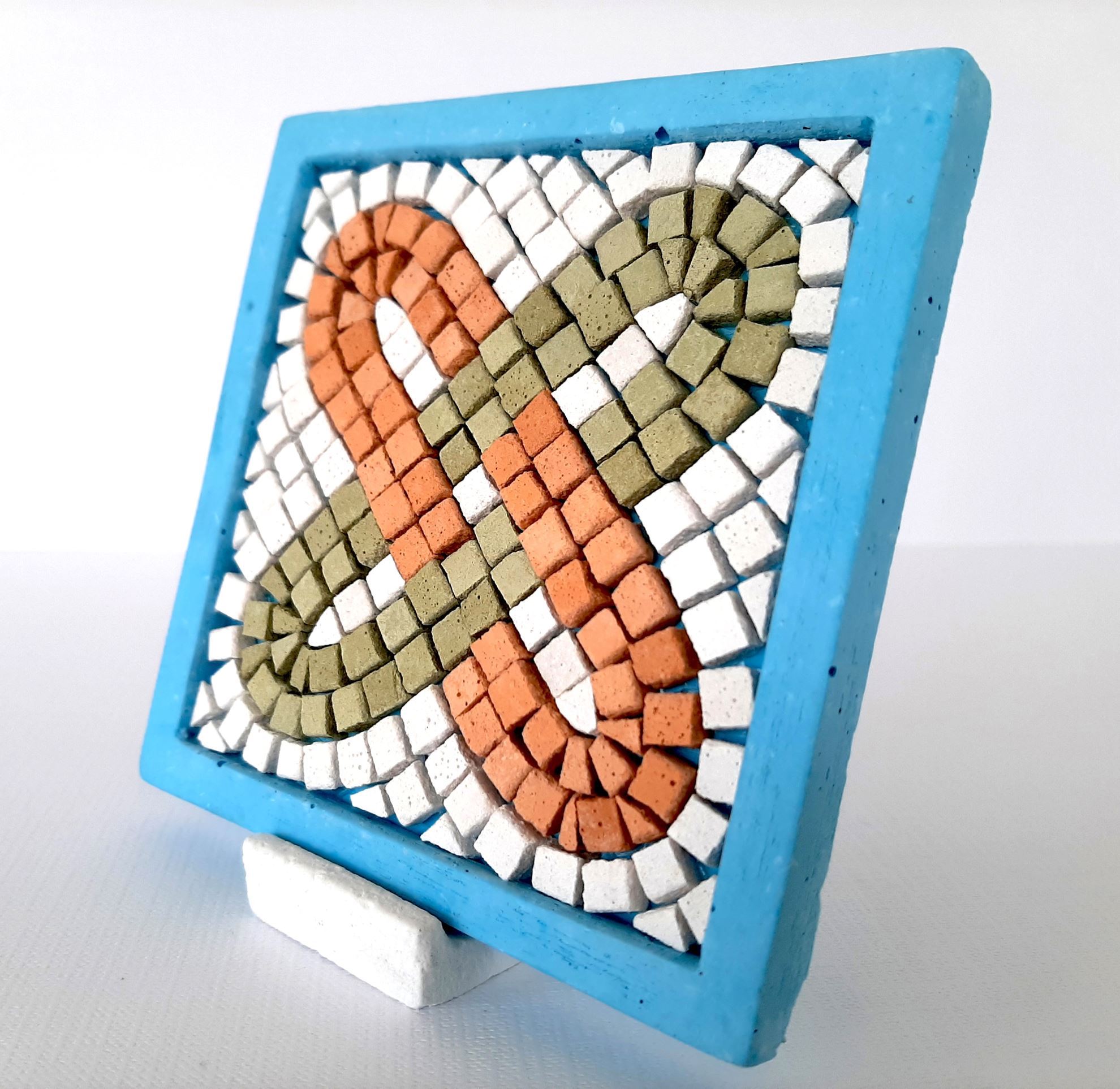 Τo ψηφιδωτό καδράκι κατασκευάζεται σε βάση χρωματισμένου ρητινούχου γύψου και συμπεριλαμβάνει μία βάση στήριξης από το ίδιο υλικό. Οι ψηφίδες που χρησιμοποιούνται είναι βυζαντινές. Οι διαστάσεις του είναι 10 x 10 cm και πάχος 1 cm. Όλα τα έργα είναι χειροποίητα και μπορεί να υπάρχουν μικρές διαφοροποιήσεις. Τα χρώματα των φωτογραφιών μπορεί να φαίνονται ελάχιστα διαφορετικά από τα πραγματικά. Σιγουρευτείτε ότι το μέγεθος είναι το κατάλληλο για εσάς.