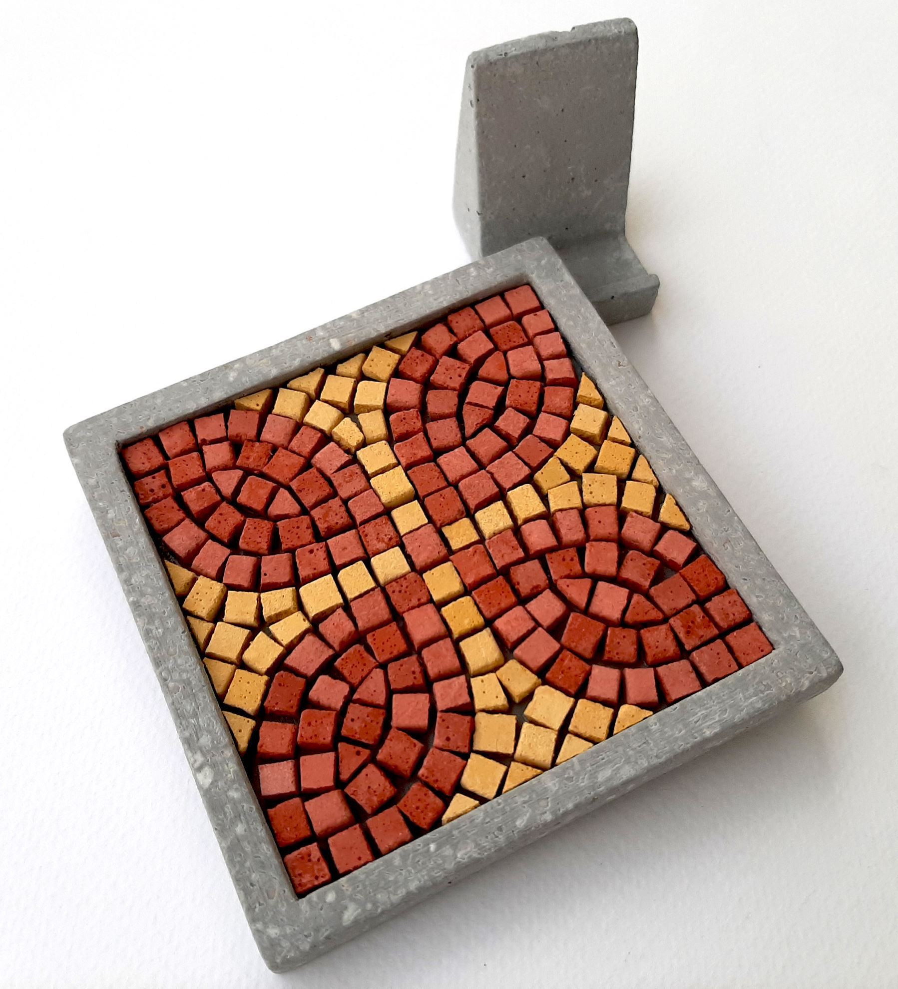 Τo ψηφιδωτό καδράκι κατασκευάζεται σε βάση χρωματισμένου ρητινούχου γύψου και συμπεριλαμβάνει μία βάση στήριξης από το ίδιο υλικό. Οι ψηφίδες που χρησιμοποιούνται είναι βυζαντινές. Οι διαστάσεις του είναι 10 x 10 cm και πάχος 1 cm. Όλα τα έργα είναι χειροποίητα και μπορεί να υπάρχουν μικρές διαφοροποιήσεις. Τα χρώματα των φωτογραφιών μπορεί να φαίνονται ελάχιστα διαφορετικά από τα πραγματικά. Σιγουρευτείτε ότι το μέγεθος είναι το κατάλληλο για εσάς.
