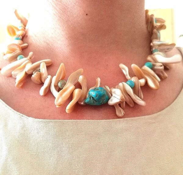 Κολιέ από φυσικό κοχύλι με τουρκουάζ