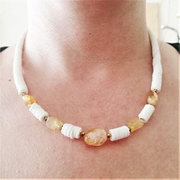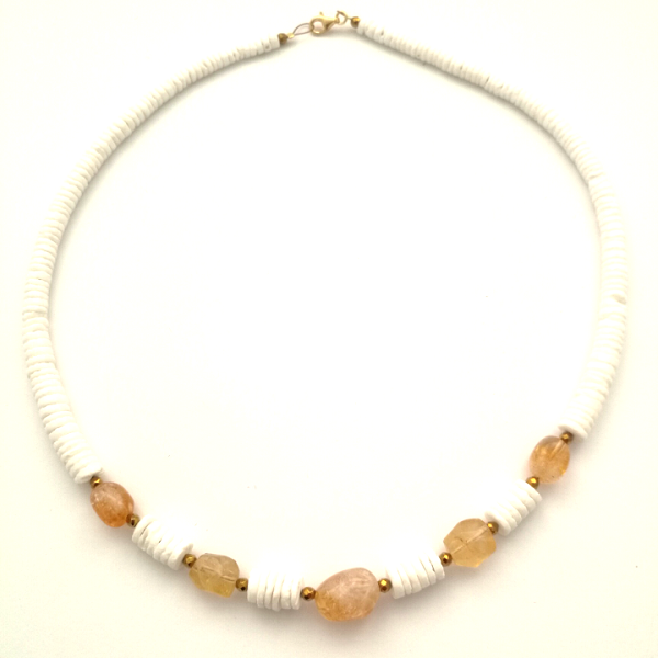 Κολιέ από φυσικό κοχύλι ροδέλα και σιτρίν (κίτρινης)