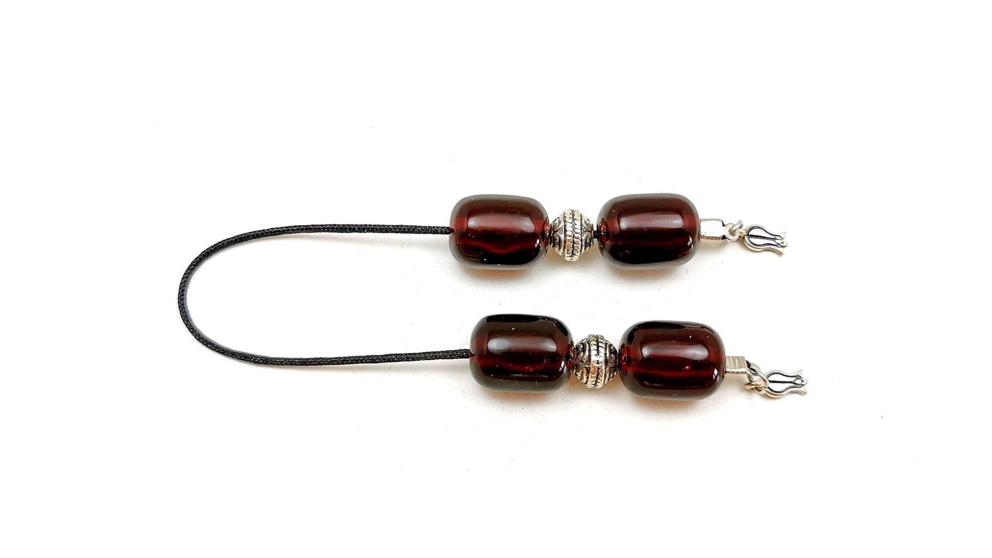 Μπεγλέρι από τεχνητή ρητίνη,μέγεθος χαντρών 12x16mm,στολισμένο με μεταλλικά στοιχεία.Παραδίδεται σε ημιδιάφανο πουγκάκι οργάντζας με καρτελάκι που αναφέρει τι υλικό είναι, σε Ελληνικά – Αγγλικά.