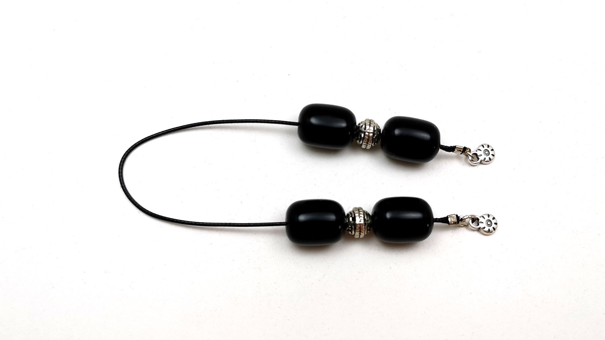 Μπεγλέρι από τεχνητή ρητίνη,μέγεθος χαντρών 12x16mm,στολισμένο με μεταλλικά στοιχεία.Παραδίδεται σε ημιδιάφανο πουγκάκι οργάντζας με καρτελάκι που αναφέρει τι υλικό είναι, σε Ελληνικά – Αγγλικά.