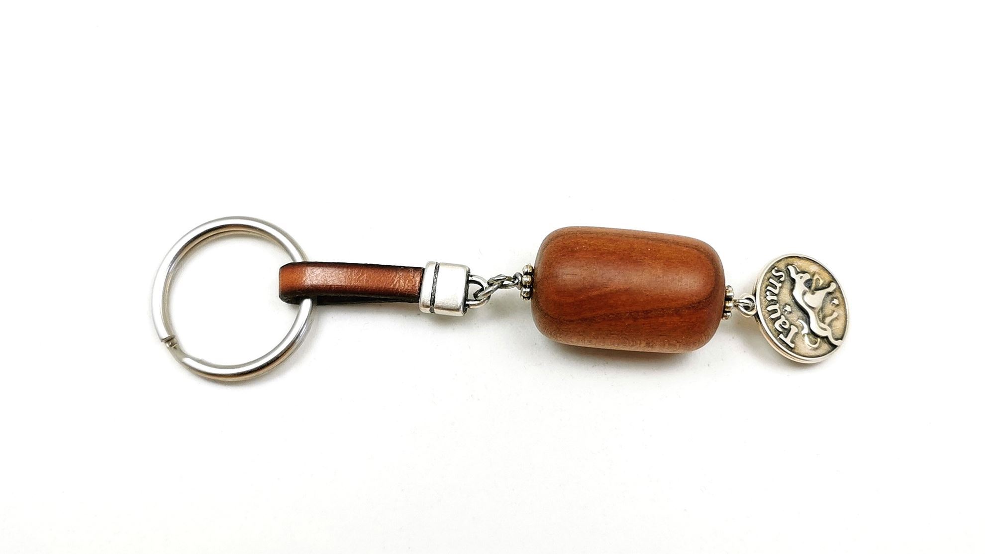 Χειροποίητο Μπρελόκ από Ελληνική Αμυγδαλιά με γνήσιο Δέρμα, μέγεθος 18x28mm. Μπορεί να κατασκευαστεί με κρεμαστό ζώδιο ή μαίανδρο ή σπείρα. Παραδίδεται σε κουτάκι και συνοδεύεται με πιστοποιητικό έντυπο που περιγράφει τη διαδικασία κατασκευής του. Τα προϊόντα μας στη σειρά ‘χειροποίητο ξύλο’ είναι όλα από Ελληνικά ξύλα που έχουν μαζευτεί από την Ελληνική ύπαιθρο, μετά τοποθετήθηκαν σε σκιερό μέρος και σκεπάστηκαν με πριονίδι για περίπου 12 έως 16 μήνες αναλόγως το ξύλο, ώστε να αποβάλουν κάθε ίχνος υγρασίας!!! Μετά αρχίζει το τεμάχισμα και η χειροποίητη επεξεργασία μίας-μίας χάντρας σε τόρνο σμιλεύοντάς την με το χέρι!!! Αφού της δώσουμε το σχήμα, προχωράμε στο φινίρισμα, αυτό σημαίνει 5 ‘χέρια’ με διαφορετικό νούμερο γυαλόχαρτου και όταν η χάντρα μας είναι έτοιμη γίνεται επάλειψη με φυσικό κερί μέλισσας και αιθέρια έλαια!!! Το κάθε Μπρελόκ είναι μοναδικό, δεν μοιάζει με κανένα άλλο ακόμα και από το ίδιο κομμάτι ξύλου!!! Όλα αυτά για να γνωρίζει ο κάτοχος ενός τέτοιου Μπρελόκ, τι κρατάει στα χέρια του!!! Λόγω της ιδιαιτερότητάς τους, όπως αντιλαμβάνεστε, είναι περιορισμένης παραγωγής!!! Τα διαθέσιμα αυτή τη στιγμή ξύλα είναι: Ελιά – Αμυγδαλιά – Βερικοκιά – Ακακία – Δρυς – Πουρνάρι – Βελανιδιά – Κουμαριά – Σκίνος – Αγριελιά – Κουτσουπιά – Μουριά – Πορτοκαλιά – Βίδι – Ευκάλυπτος – Καρυδιά – Ιτιά – Κερασιά – Κυπαρίσσι.