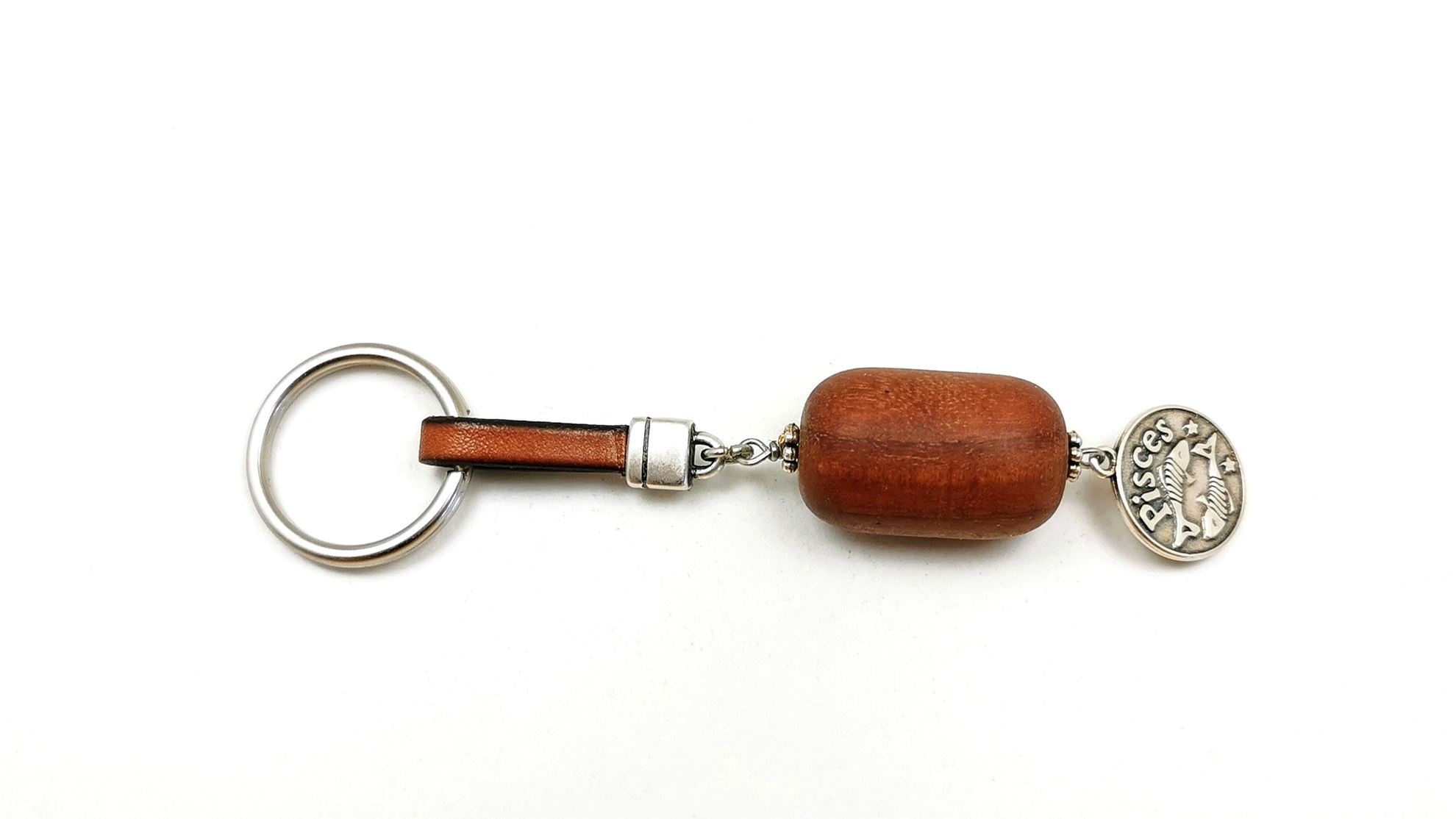 Χειροποίητο Μπρελόκ από Ελληνικό Ευκάλυπτο με γνήσιο Δέρμα, μέγεθος 18x28mm. Μπορεί να κατασκευαστεί με κρεμαστό ζώδιο ή μαίανδρο ή σπείρα. Παραδίδεται σε κουτάκι και συνοδεύεται με πιστοποιητικό έντυπο που περιγράφει τη διαδικασία κατασκευής του. Τα προϊόντα μας στη σειρά ‘χειροποίητο ξύλο’ είναι όλα από Ελληνικά ξύλα που έχουν μαζευτεί από την Ελληνική ύπαιθρο, μετά τοποθετήθηκαν σε σκιερό μέρος και σκεπάστηκαν με πριονίδι για περίπου 12 έως 16 μήνες αναλόγως το ξύλο, ώστε να αποβάλουν κάθε ίχνος υγρασίας!!! Μετά αρχίζει το τεμάχισμα και η χειροποίητη επεξεργασία μίας-μίας χάντρας σε τόρνο σμιλεύοντάς την με το χέρι!!! Αφού της δώσουμε το σχήμα, προχωράμε στο φινίρισμα, αυτό σημαίνει 5 ‘χέρια’ με διαφορετικό νούμερο γυαλόχαρτου και όταν η χάντρα μας είναι έτοιμη γίνεται επάλειψη με φυσικό κερί μέλισσας και αιθέρια έλαια!!! Το κάθε Μπρελόκ είναι μοναδικό, δεν μοιάζει με κανένα άλλο ακόμα και από το ίδιο κομμάτι ξύλου!!! Όλα αυτά για να γνωρίζει ο κάτοχος ενός τέτοιου Μπρελόκ, τι κρατάει στα χέρια του!!! Λόγω της ιδιαιτερότητάς τους, όπως αντιλαμβάνεστε, είναι περιορισμένης παραγωγής!!! Τα διαθέσιμα αυτή τη στιγμή ξύλα είναι: Ελιά – Αμυγδαλιά – Βερικοκιά – Ακακία – Δρυς – Πουρνάρι – Βελανιδιά – Κουμαριά – Σκίνος – Αγριελιά – Κουτσουπιά – Μουριά – Πορτοκαλιά – Βίδι – Ευκάλυπτος – Καρυδιά – Ιτιά – Κερασιά – Κυπαρίσσι.