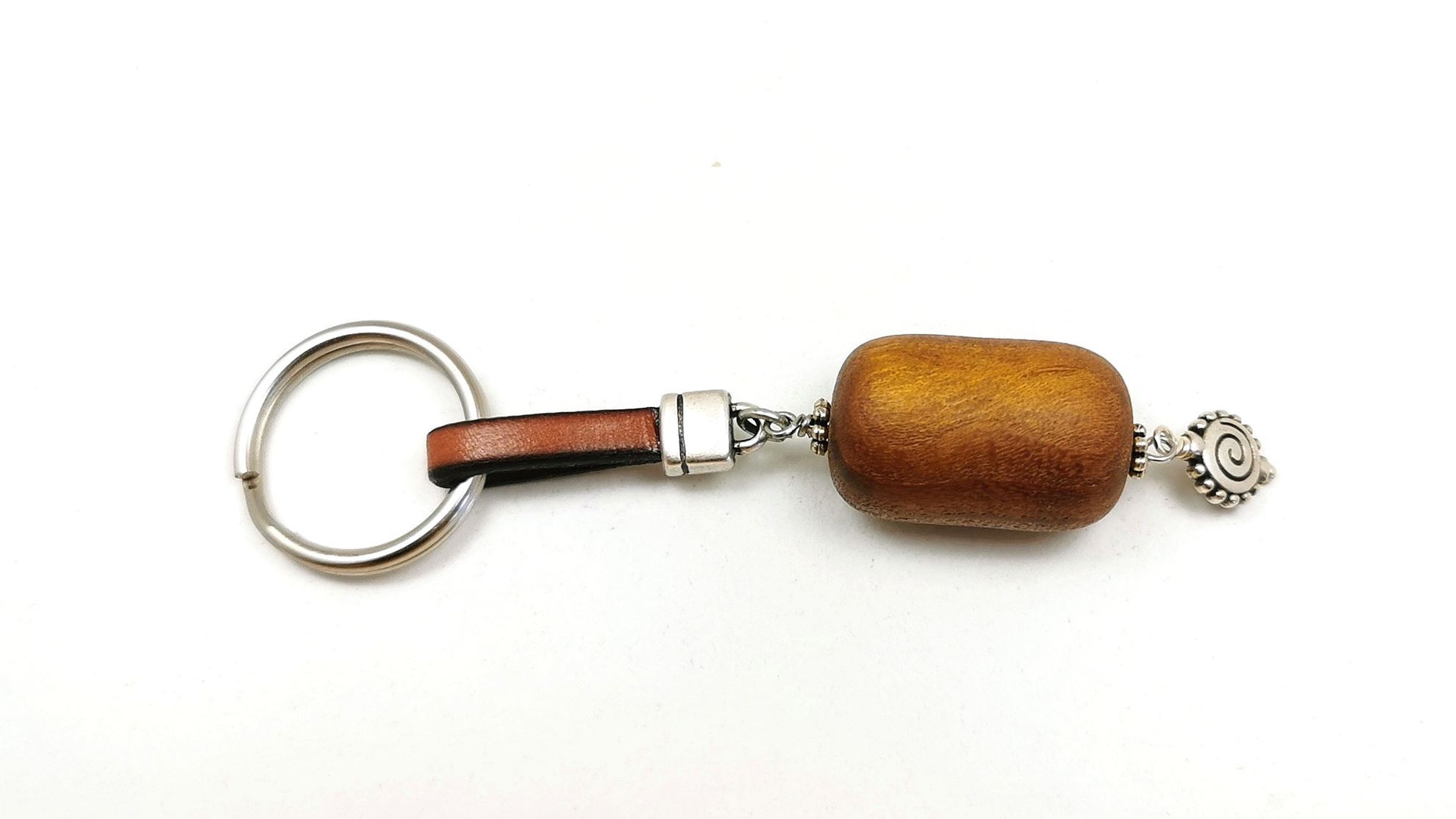 Χειροποίητο Μπρελόκ από Ελληνική Μουριά με γνήσιο Δέρμα, μέγεθος 18x28mm. Μπορεί να κατασκευαστεί με κρεμαστό ζώδιο ή μαίανδρο ή σπείρα. Παραδίδεται σε κουτάκι και συνοδεύεται με πιστοποιητικό έντυπο που περιγράφει τη διαδικασία κατασκευής του. Τα προϊόντα μας στη σειρά ‘χειροποίητο ξύλο’ είναι όλα από Ελληνικά ξύλα που έχουν μαζευτεί από την Ελληνική ύπαιθρο, μετά τοποθετήθηκαν σε σκιερό μέρος και σκεπάστηκαν με πριονίδι για περίπου 12 έως 16 μήνες αναλόγως το ξύλο, ώστε να αποβάλουν κάθε ίχνος υγρασίας!!! Μετά αρχίζει το τεμάχισμα και η χειροποίητη επεξεργασία μίας-μίας χάντρας σε τόρνο σμιλεύοντάς την με το χέρι!!! Αφού της δώσουμε το σχήμα, προχωράμε στο φινίρισμα, αυτό σημαίνει 5 ‘χέρια’ με διαφορετικό νούμερο γυαλόχαρτου και όταν η χάντρα μας είναι έτοιμη γίνεται επάλειψη με φυσικό κερί μέλισσας και αιθέρια έλαια!!! Το κάθε Μπρελόκ είναι μοναδικό, δεν μοιάζει με κανένα άλλο ακόμα και από το ίδιο κομμάτι ξύλου!!! Όλα αυτά για να γνωρίζει ο κάτοχος ενός τέτοιου Μπρελόκ, τι κρατάει στα χέρια του!!! Λόγω της ιδιαιτερότητάς τους, όπως αντιλαμβάνεστε, είναι περιορισμένης παραγωγής!!! Τα διαθέσιμα αυτή τη στιγμή ξύλα είναι: Ελιά – Αμυγδαλιά – Βερικοκιά – Ακακία – Δρυς – Πουρνάρι – Βελανιδιά – Κουμαριά – Σκίνος – Αγριελιά – Κουτσουπιά – Μουριά – Πορτοκαλιά – Βίδι – Ευκάλυπτος – Καρυδιά – Ιτιά – Κερασιά – Κυπαρίσσι.