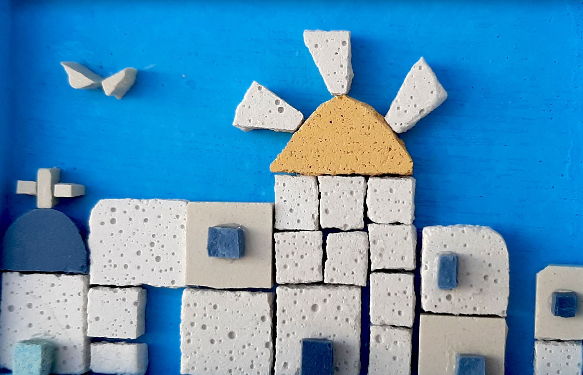 Τo ψηφιδωτό καδράκι κατασκευάζεται σε βάση χρωματισμένου ρητινούχου γύψου με πέτρα και συμπεριλαμβάνει μία βάση στήριξης από το ίδιο υλικό. Οι ψηφίδες που χρησιμοποιούνται είναι κεραμικές και βυζαντινές. Οι διαστάσεις του είναι 8 x 6 x 1cm. Όλα τα έργα είναι χειροποίητα και μπορεί να υπάρχουν μικρές διαφοροποιήσεις. Τα χρώματα των φωτογραφιών μπορεί να φαίνονται ελάχιστα διαφορετικά από τα πραγματικά. Σιγουρευτείτε ότι το μέγεθος είναι το κατάλληλο για εσάς.