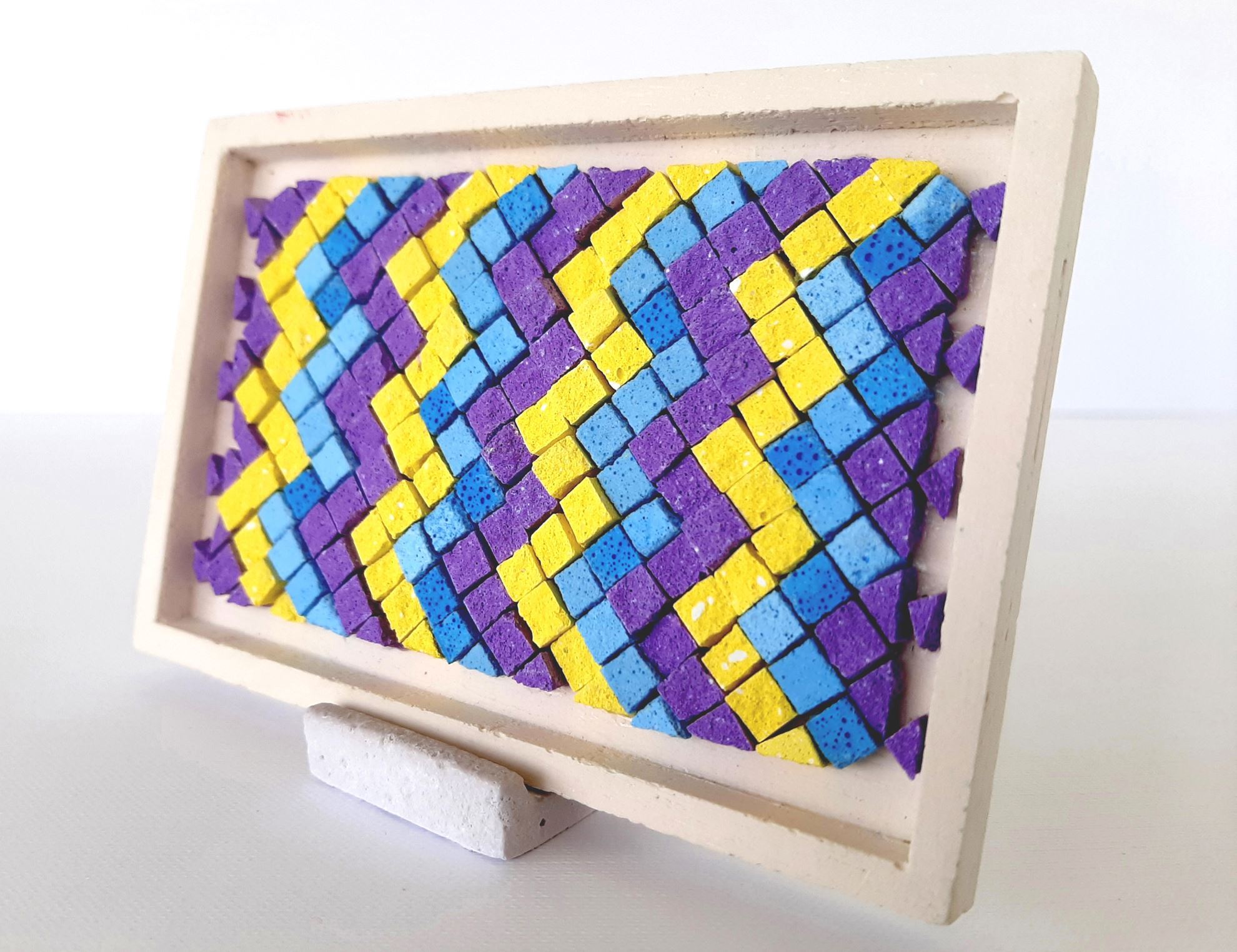 Τo ψηφιδωτό καδράκι κατασκευάζεται σε βάση χρωματισμένου ρητινούχου γύψου και συμπεριλαμβάνει μία βάση στήριξης από το ίδιο υλικό. Οι ψηφίδες που χρησιμοποιούνται είναι βυζαντινές και τεχνογρανίτες. Οι διαστάσεις του είναι 12 x 8 x 1cm. Όλα τα έργα είναι χειροποίητα και μπορεί να υπάρχουν μικρές διαφοροποιήσεις. Τα χρώματα των φωτογραφιών μπορεί να φαίνονται ελάχιστα διαφορετικά από τα πραγματικά. Σιγουρευτείτε ότι το μέγεθος είναι το κατάλληλο για εσάς.