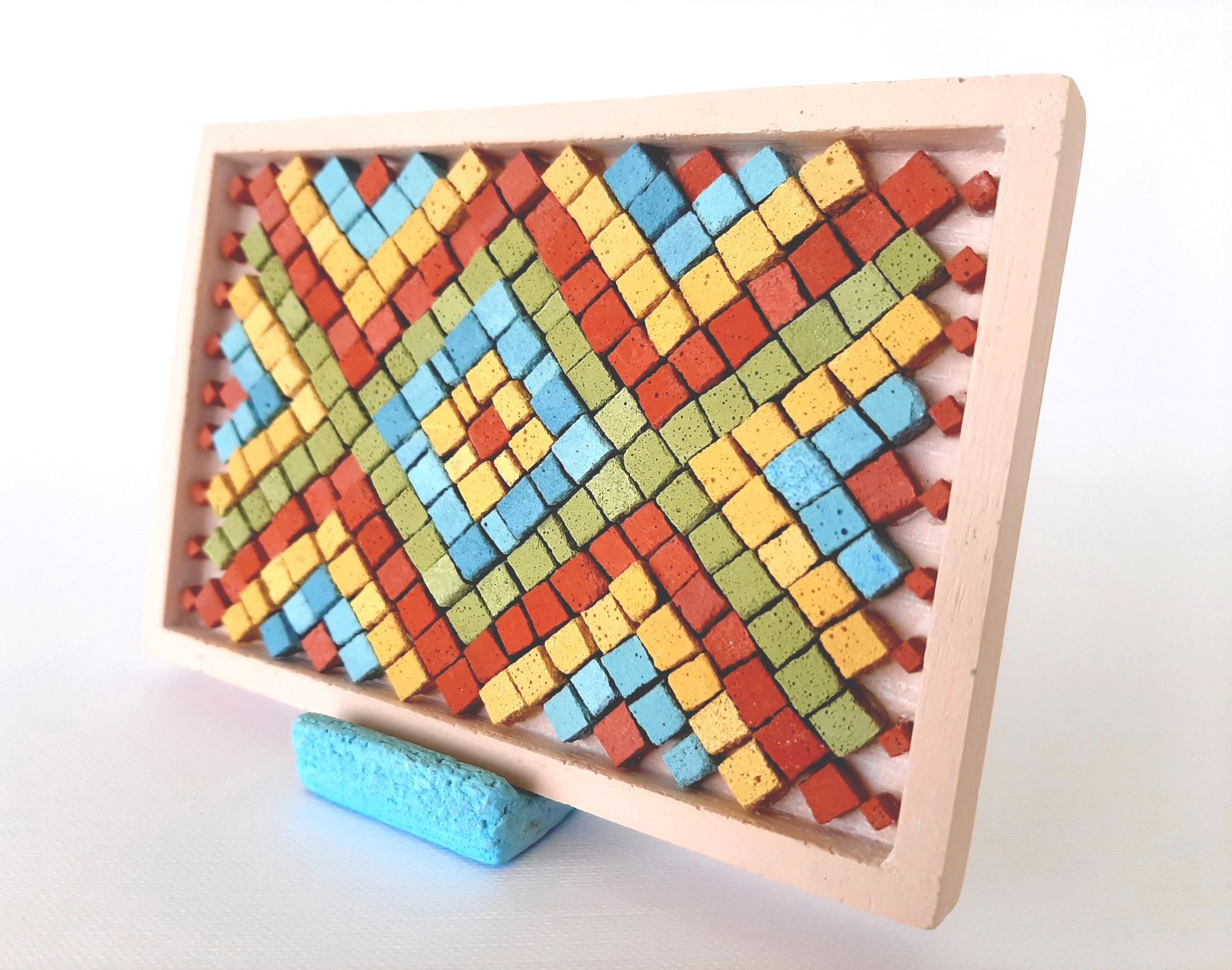 Τo ψηφιδωτό καδράκι κατασκευάζεται σε βάση χρωματισμένου ρητινούχου γύψου και συμπεριλαμβάνει μία βάση στήριξης από το ίδιο υλικό. Οι ψηφίδες που χρησιμοποιούνται είναι βυζαντινές. Οι διαστάσεις του είναι 12 x 8 x 1cm. Όλα τα έργα είναι χειροποίητα και μπορεί να υπάρχουν μικρές διαφοροποιήσεις. Τα χρώματα των φωτογραφιών μπορεί να φαίνονται ελάχιστα διαφορετικά από τα πραγματικά. Σιγουρευτείτε ότι το μέγεθος είναι το κατάλληλο για εσάς.