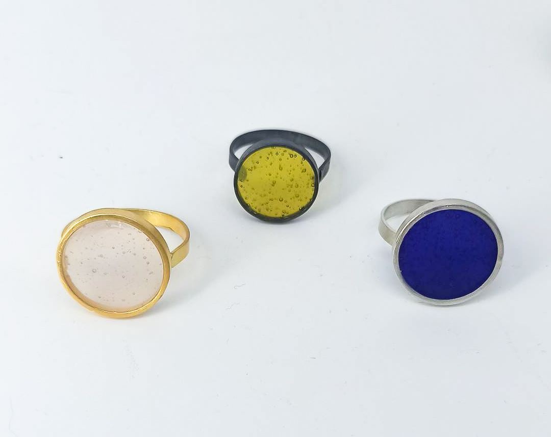 Δαχτυλίδια από ασήμι 925ο με σμάλτο εσωτερικά σε διάφορα χρώματα, σε επίχρυσο και οξείδωση. Διάμετρος: 2cm